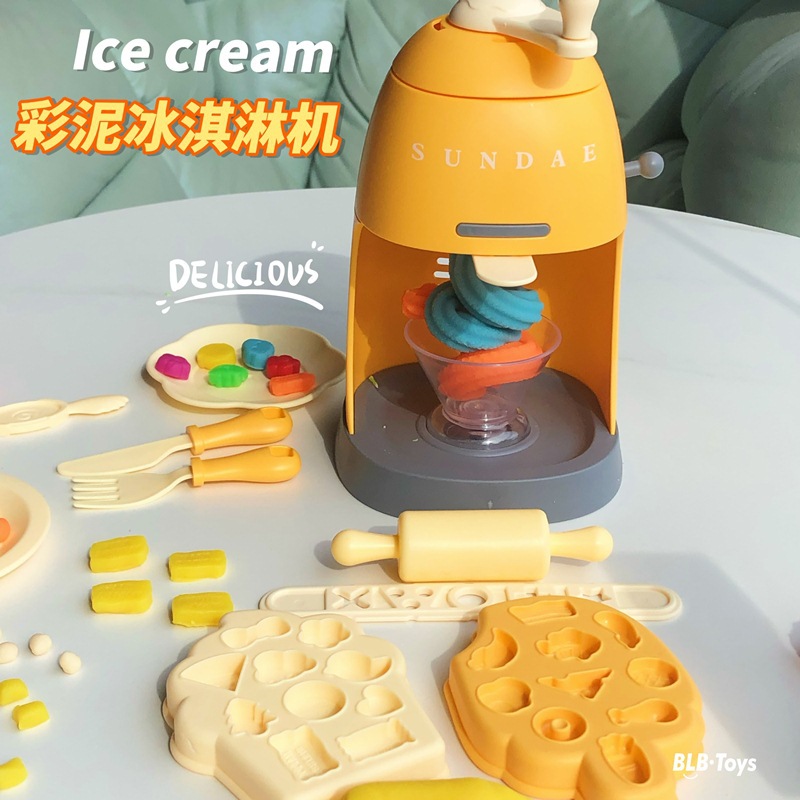 어린이 컬러 진흙 시뮬레이션 국수 기계 아이스크림 플라스틱 수제 점토 장난감 크리 에이 티브 아이스크림 케이크 주방스토어 가기
