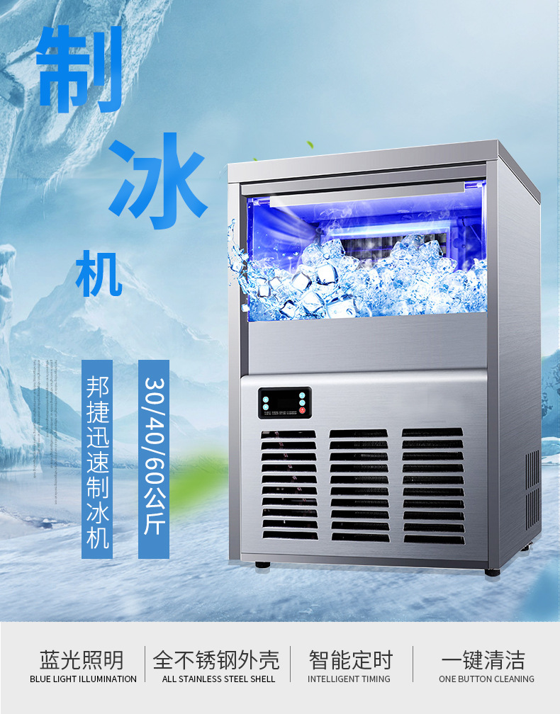 Bangjie 상업용 제빙기 30/40/60kg 사각형 얼음 우유 차 가게 레스토랑 가정용 상업 자동 타이밍스토어 가기