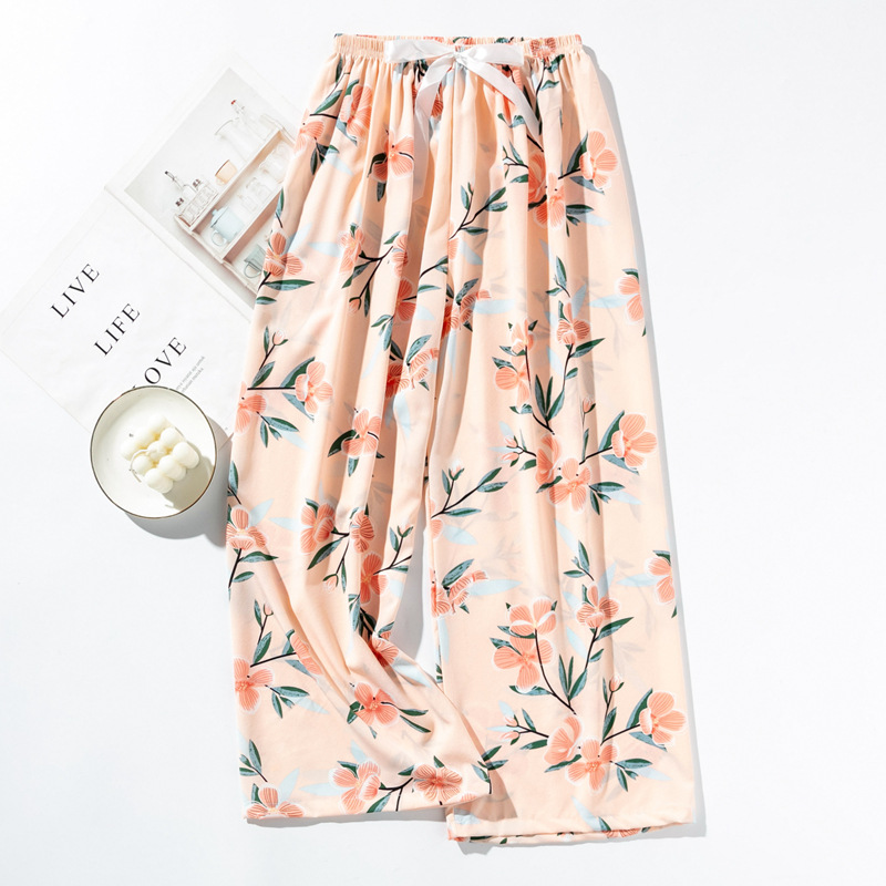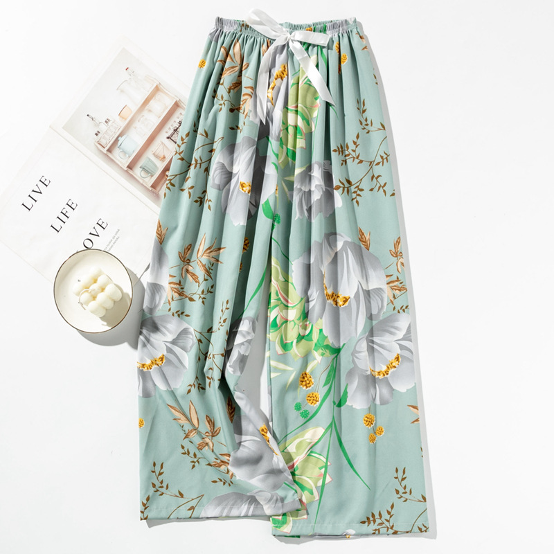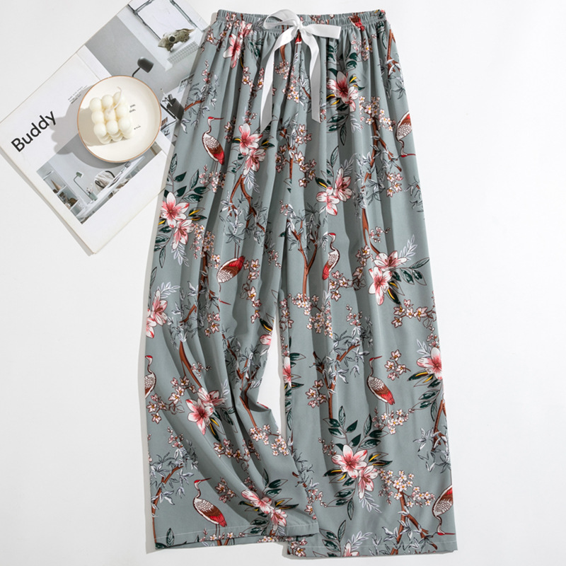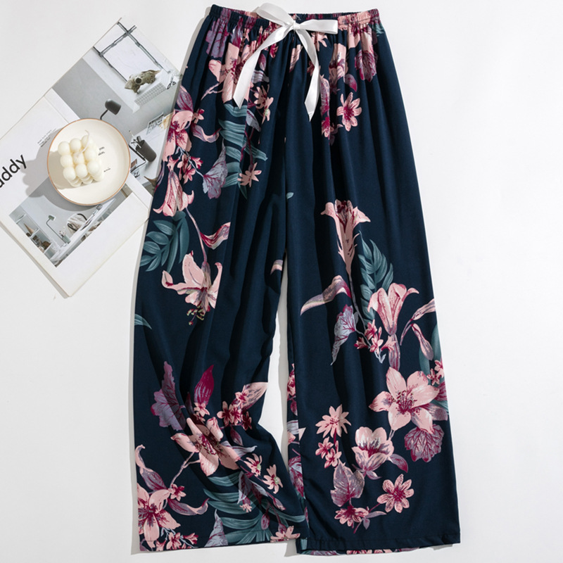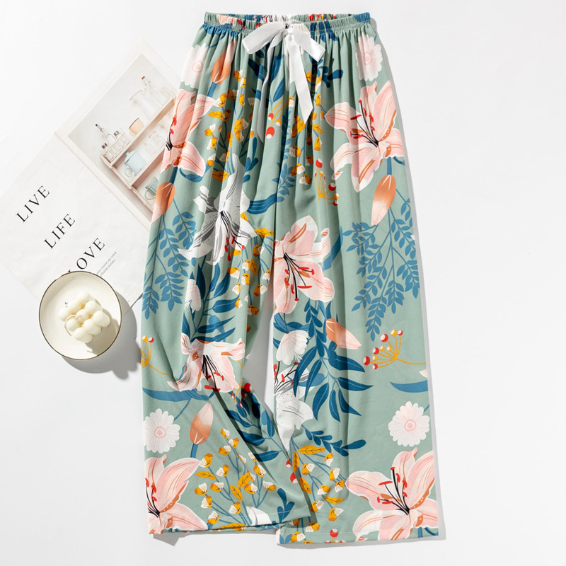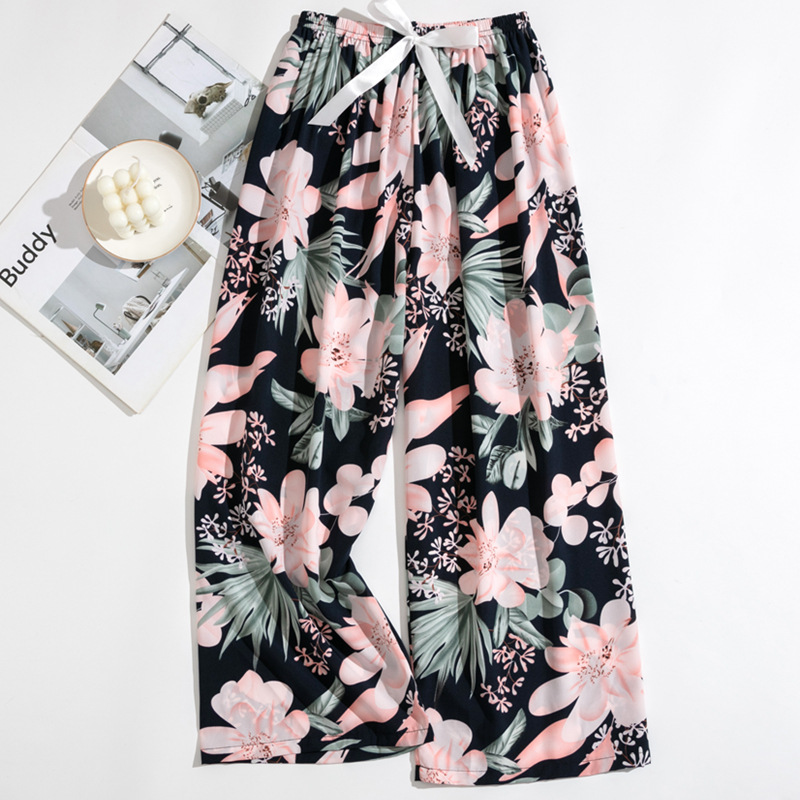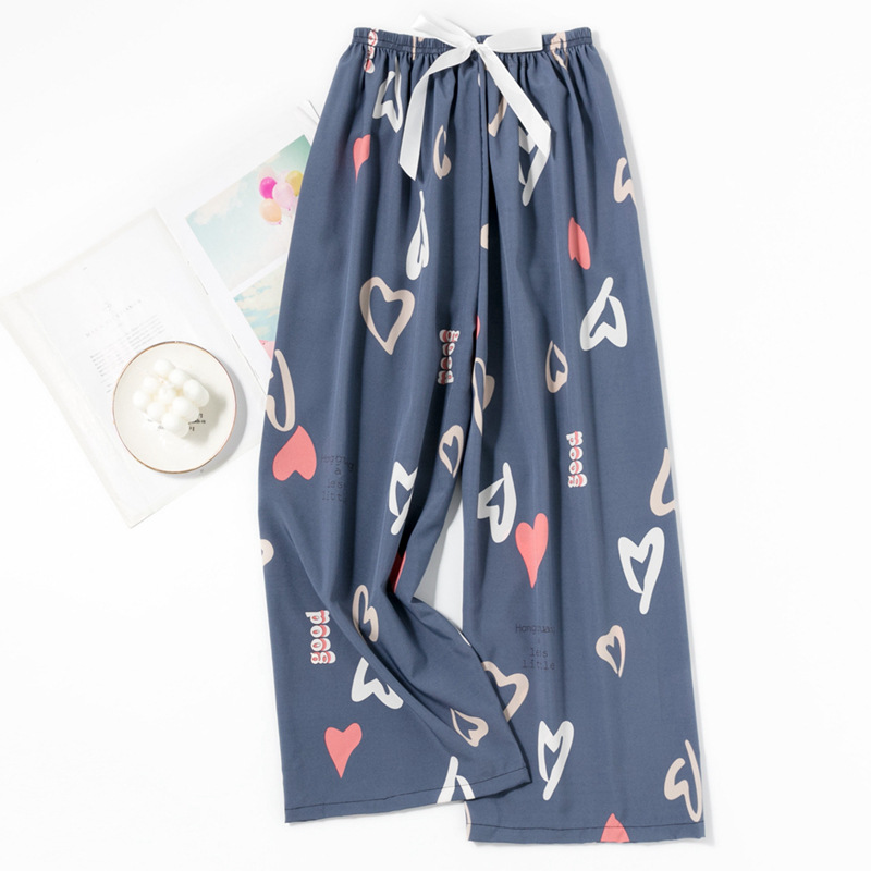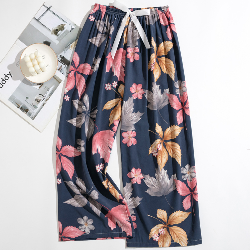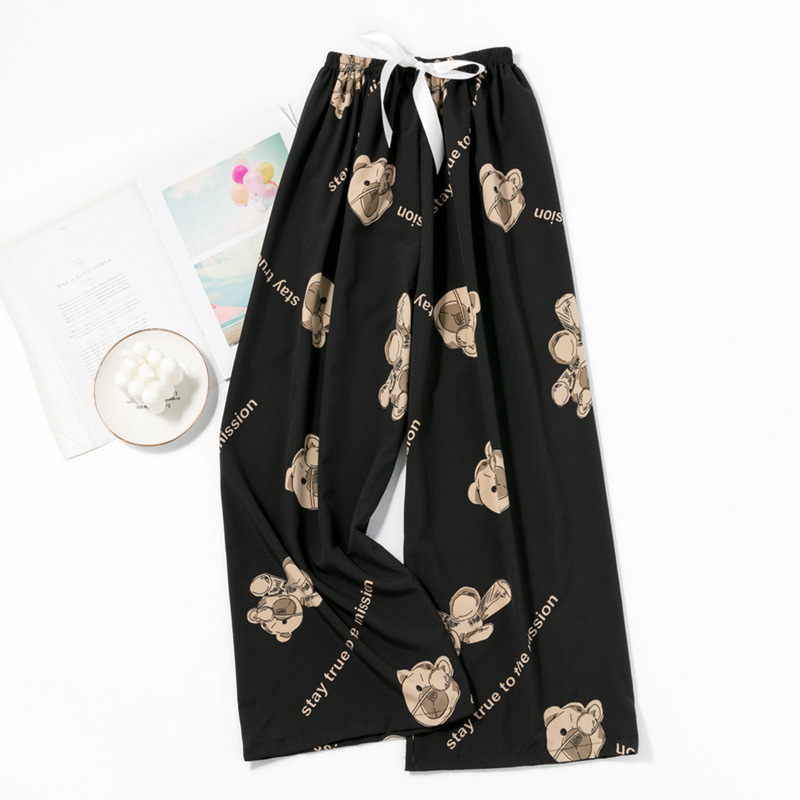 봄과 여름 새로운 대외 무역 면 실크 잠옷 바지 여자의 얇은 편안한 느슨한 플러스 사이즈 와이드 다리 바지 벽 면 만화 바지