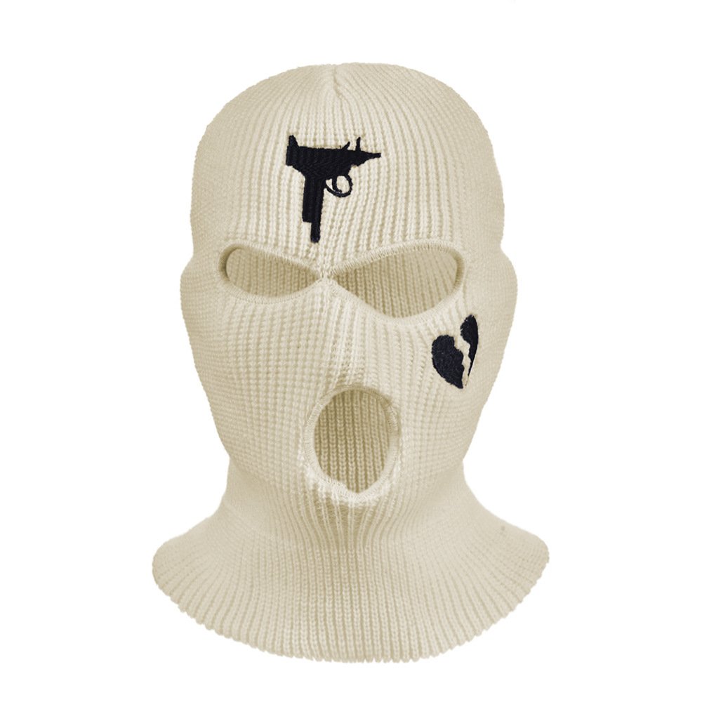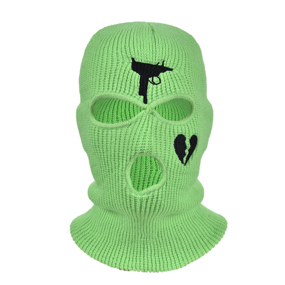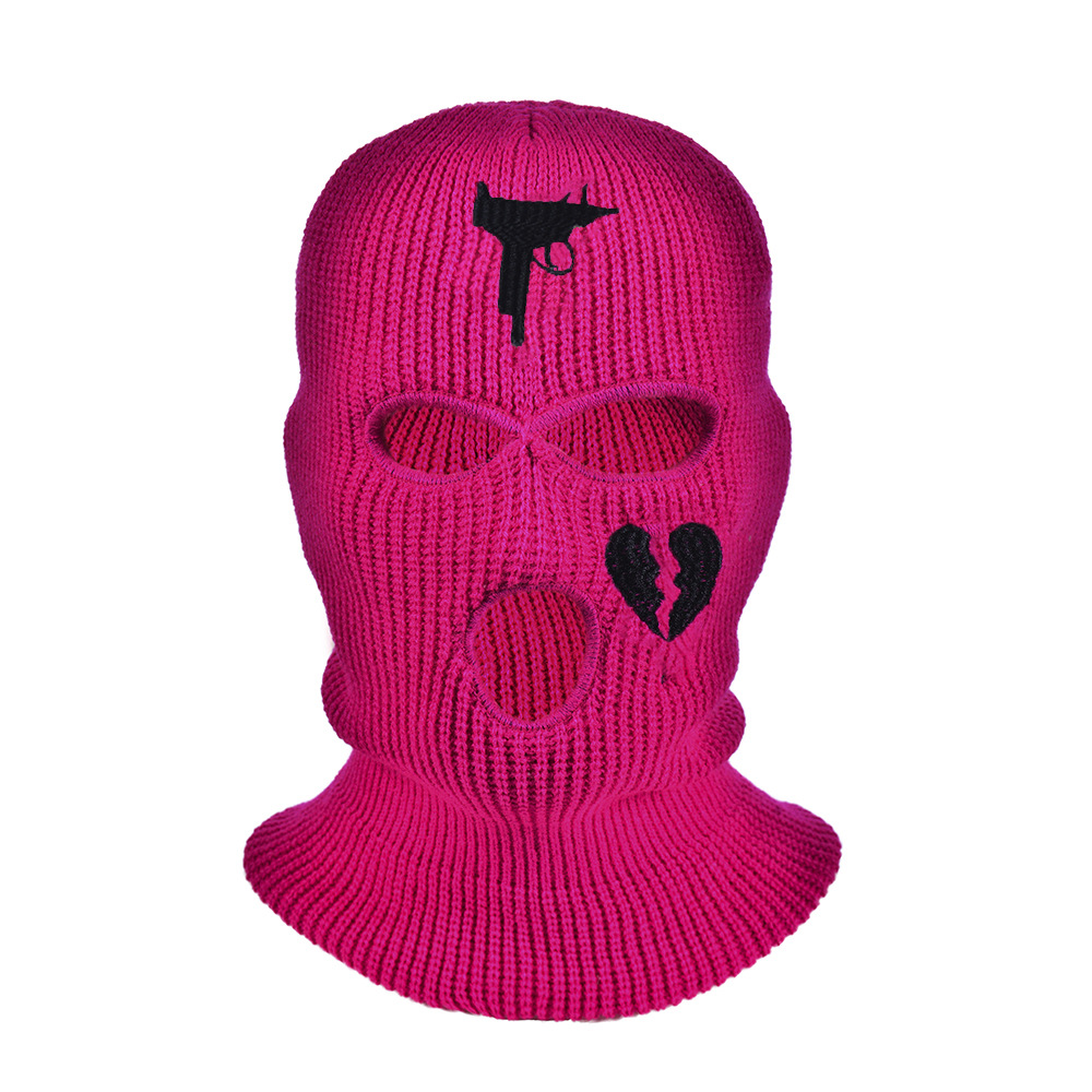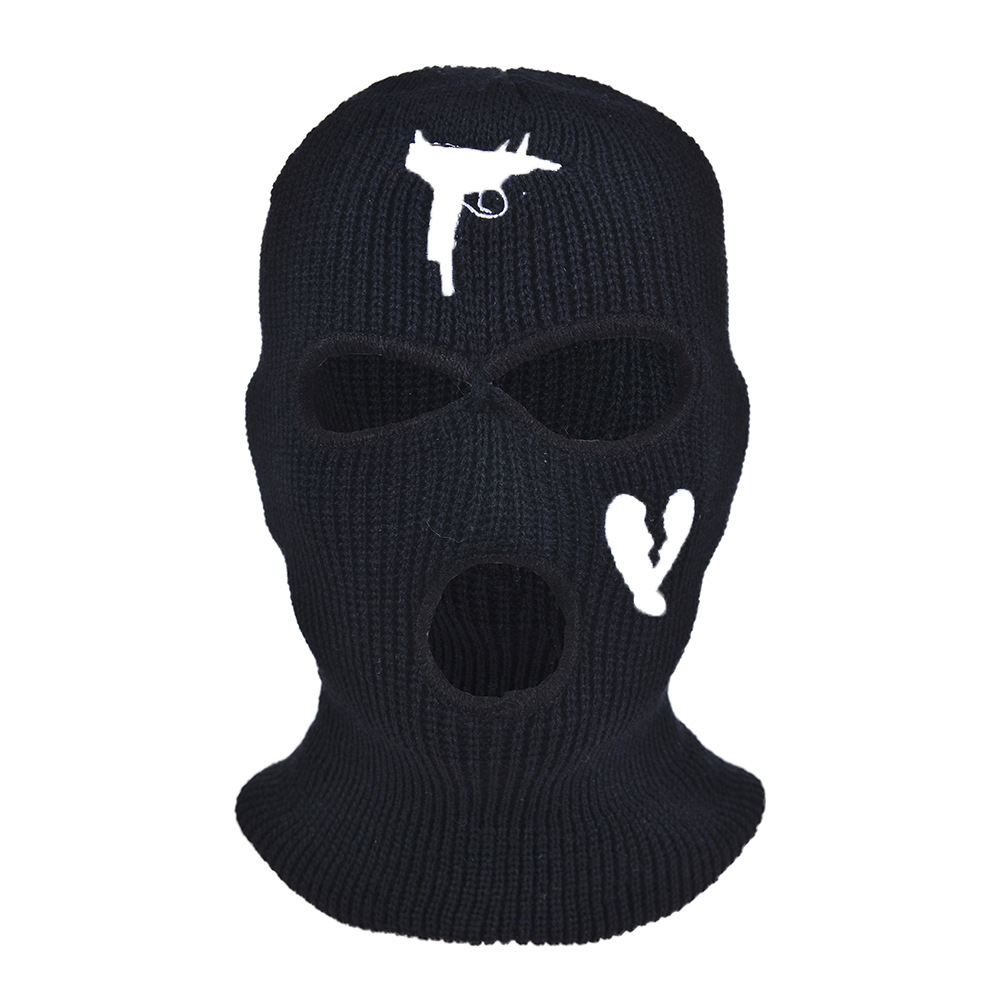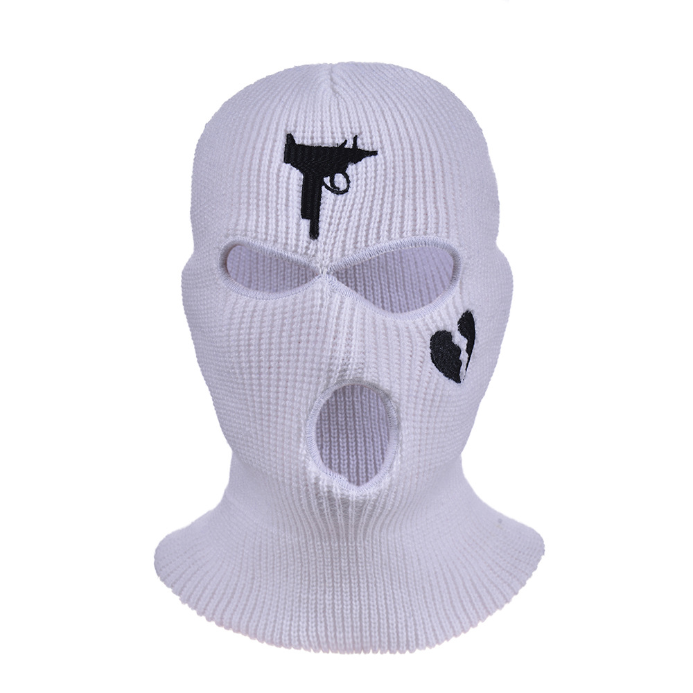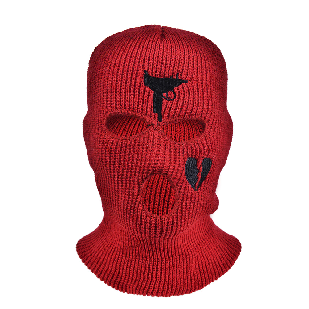 아크릴 자수 3 홀 모자 스키 마스크 겨울 따뜻한 승마 자수 파는 니트 모자