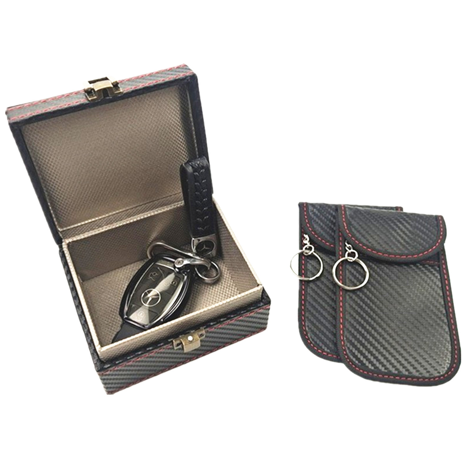 套餐产品:1个小号屏蔽盒+2个碳纤维钥匙包