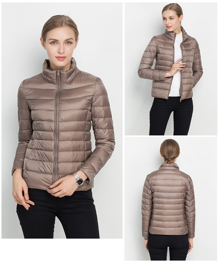 여자 겨울 코트 2024 가을 겨울 패션 경량 화이트 오리 다운 칼라 슬림 핏 여성용 겨울 다운 코트스토어 가기