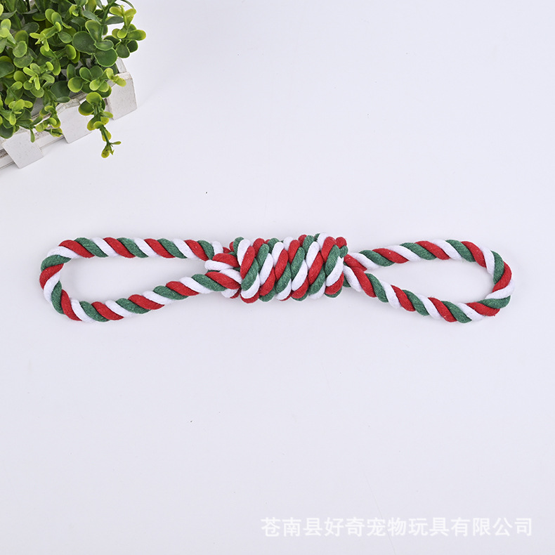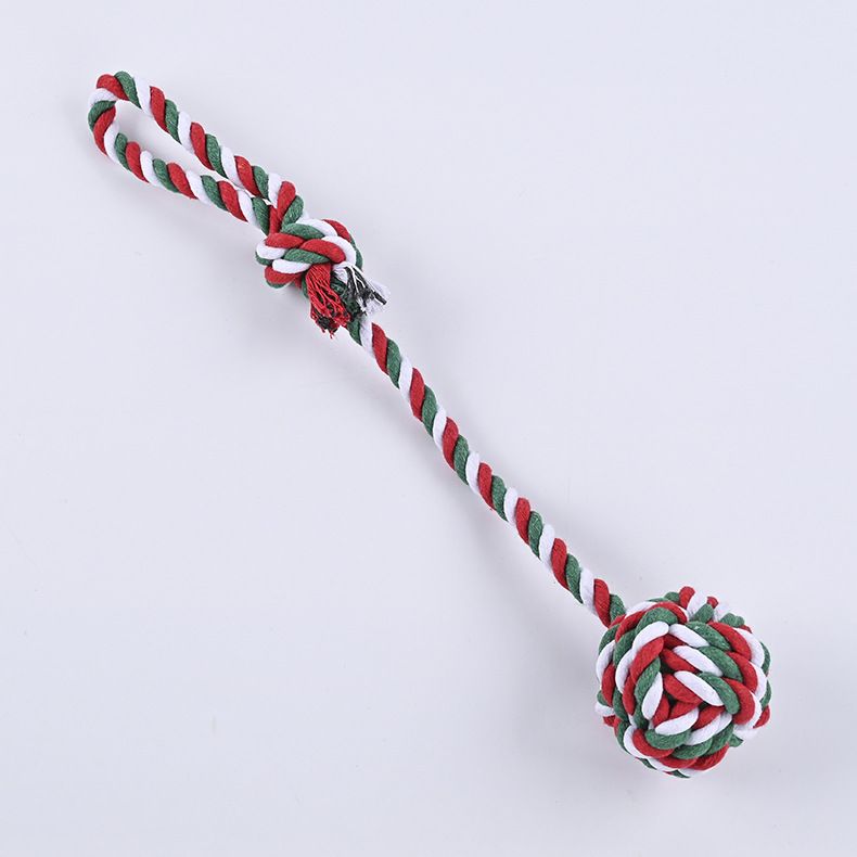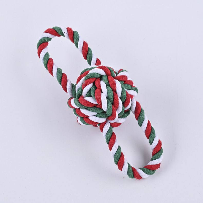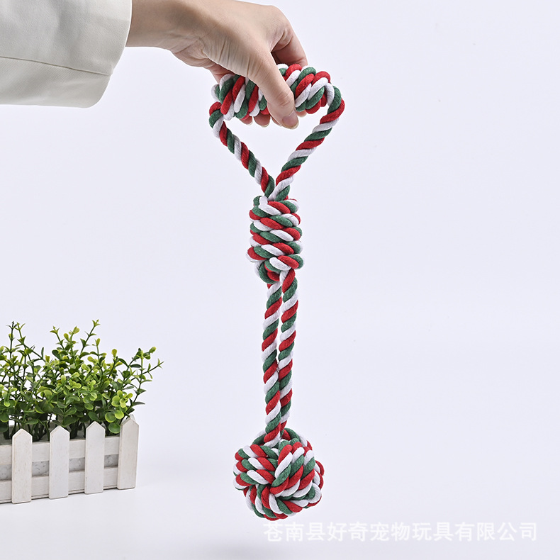 아마존 크로스 보더 애완 동물 크리스마스 면 로프 장난감 세트 개 장난감 용품 강아지 대화 형 핸드 풀 볼스토어 가기