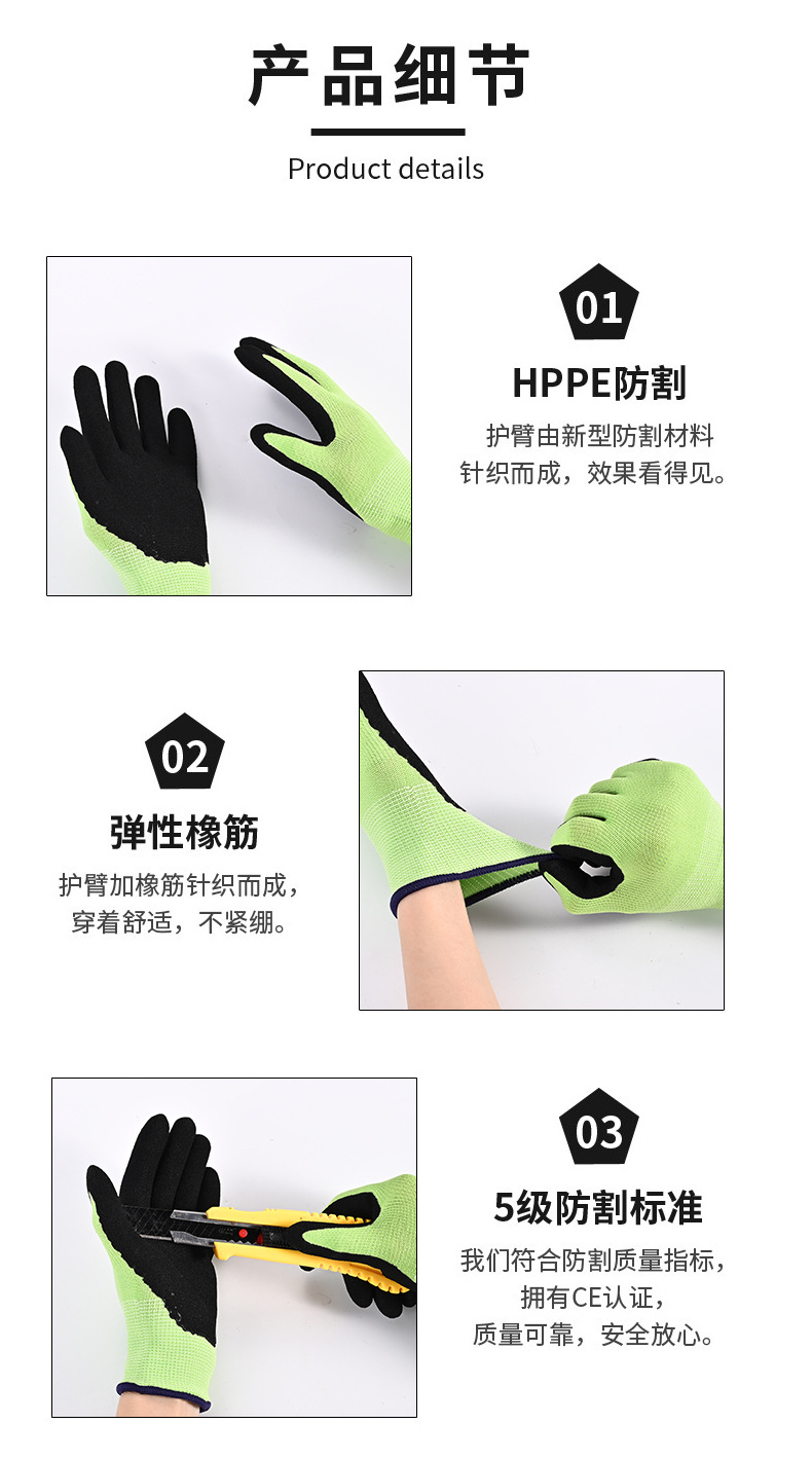 절단 방지 어린이 장갑 5 안전 내마모성 스크래치 방지 장갑 도매 부드럽고 편안한 비 쏘는 손 재고