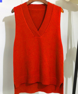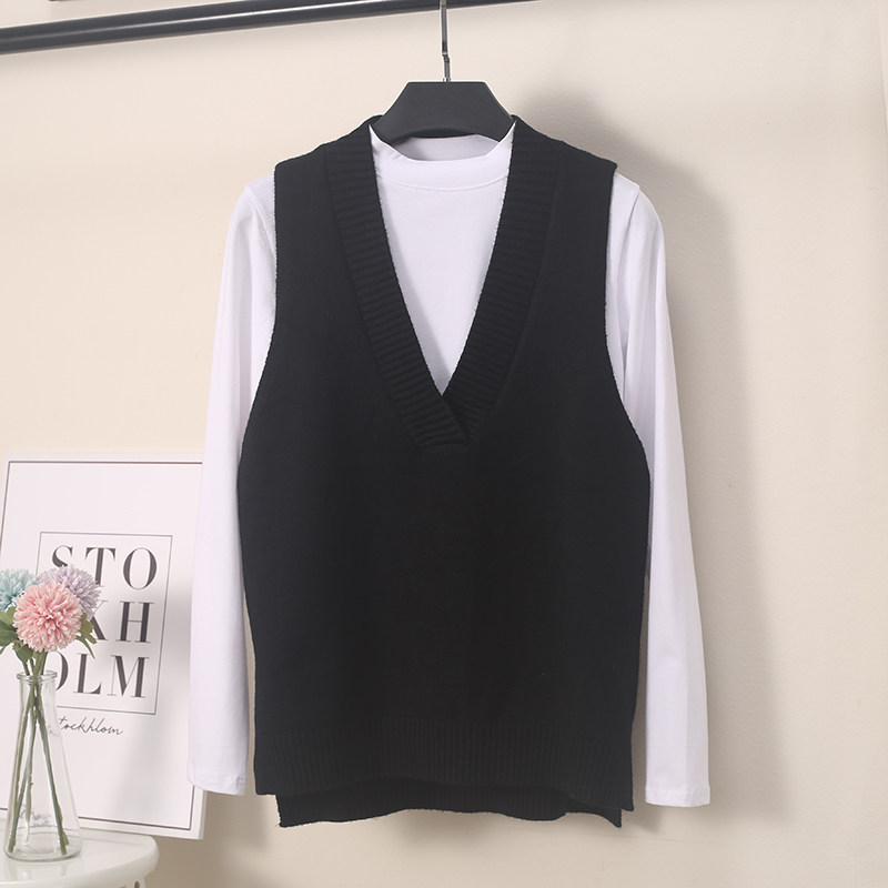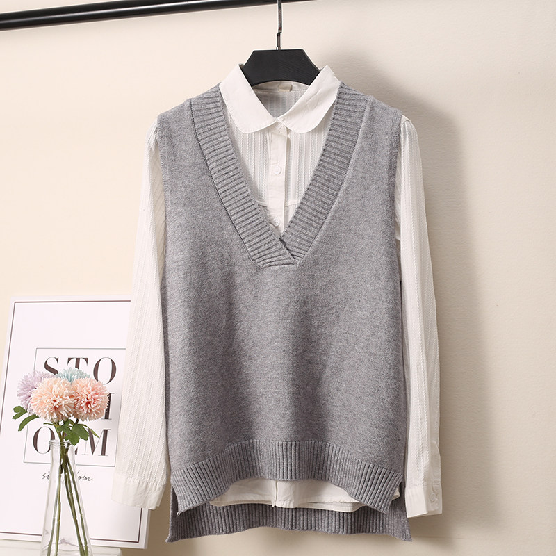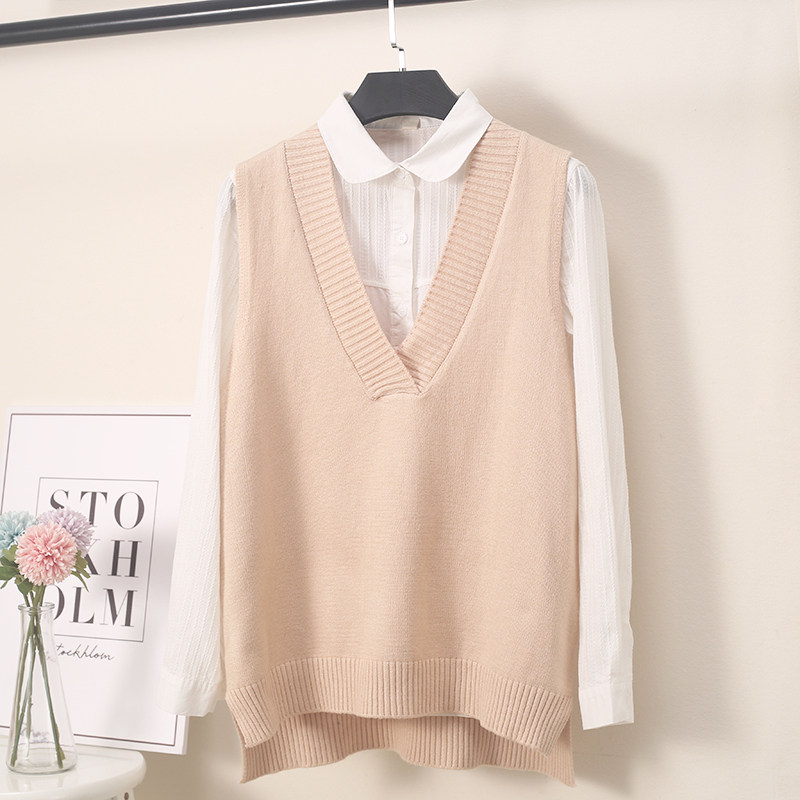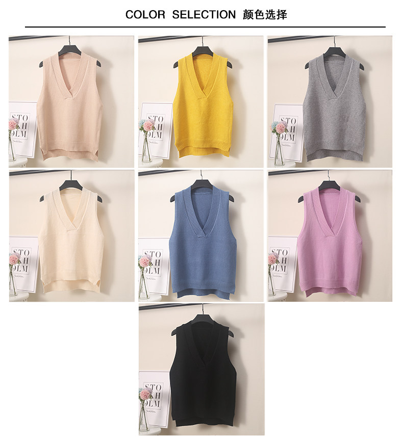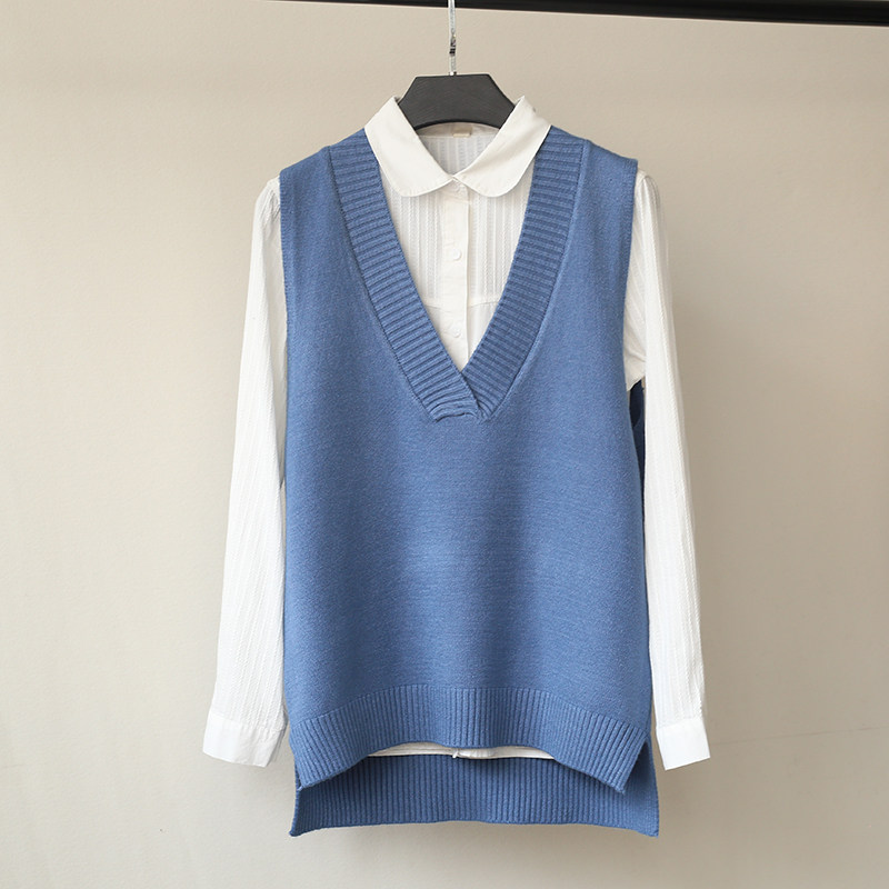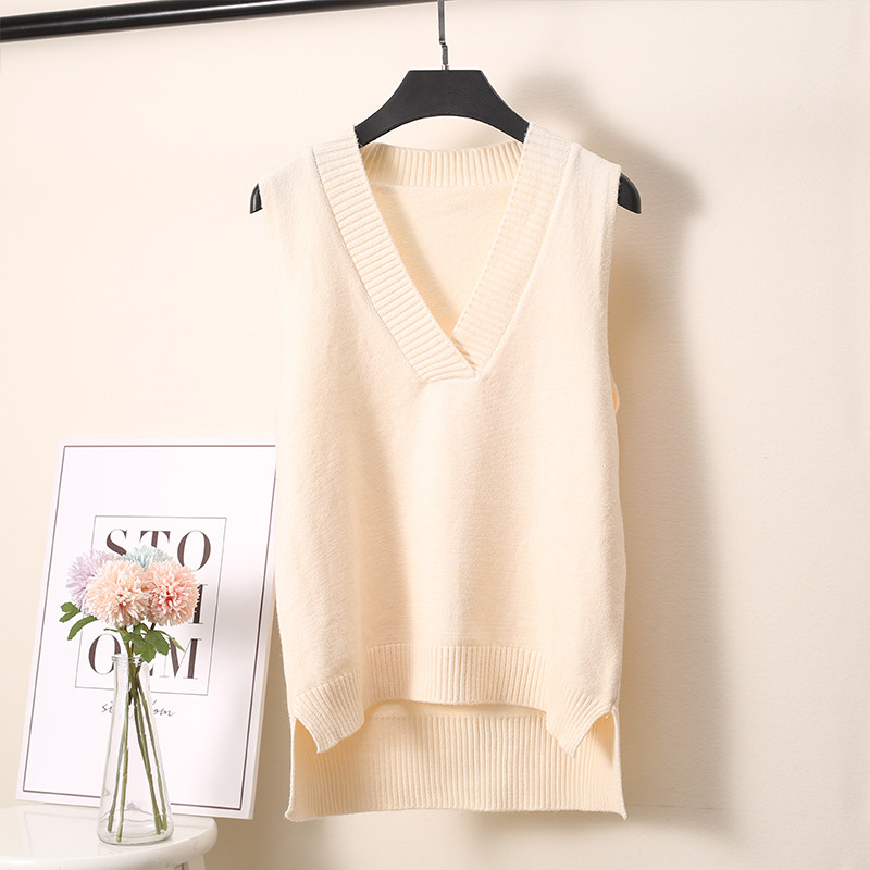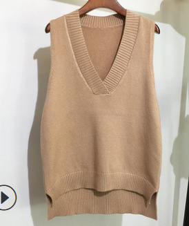 2025 가을 신상 한국 스타일 루즈핏 브이넥 민소매 슬릿 니트 조끼 학생용 여성 스웨터스토어 가기