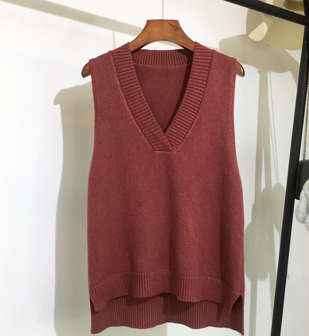 2025 가을 신상 한국 스타일 루즈핏 브이넥 민소매 슬릿 니트 조끼 학생용 여성 스웨터