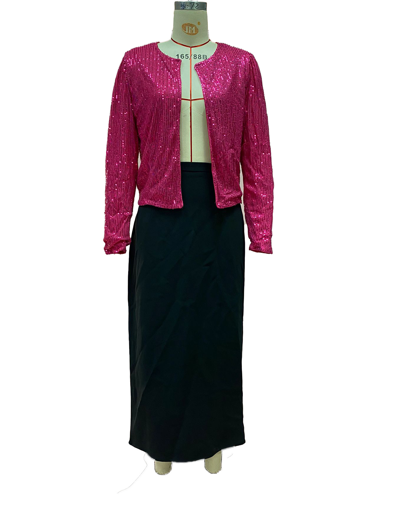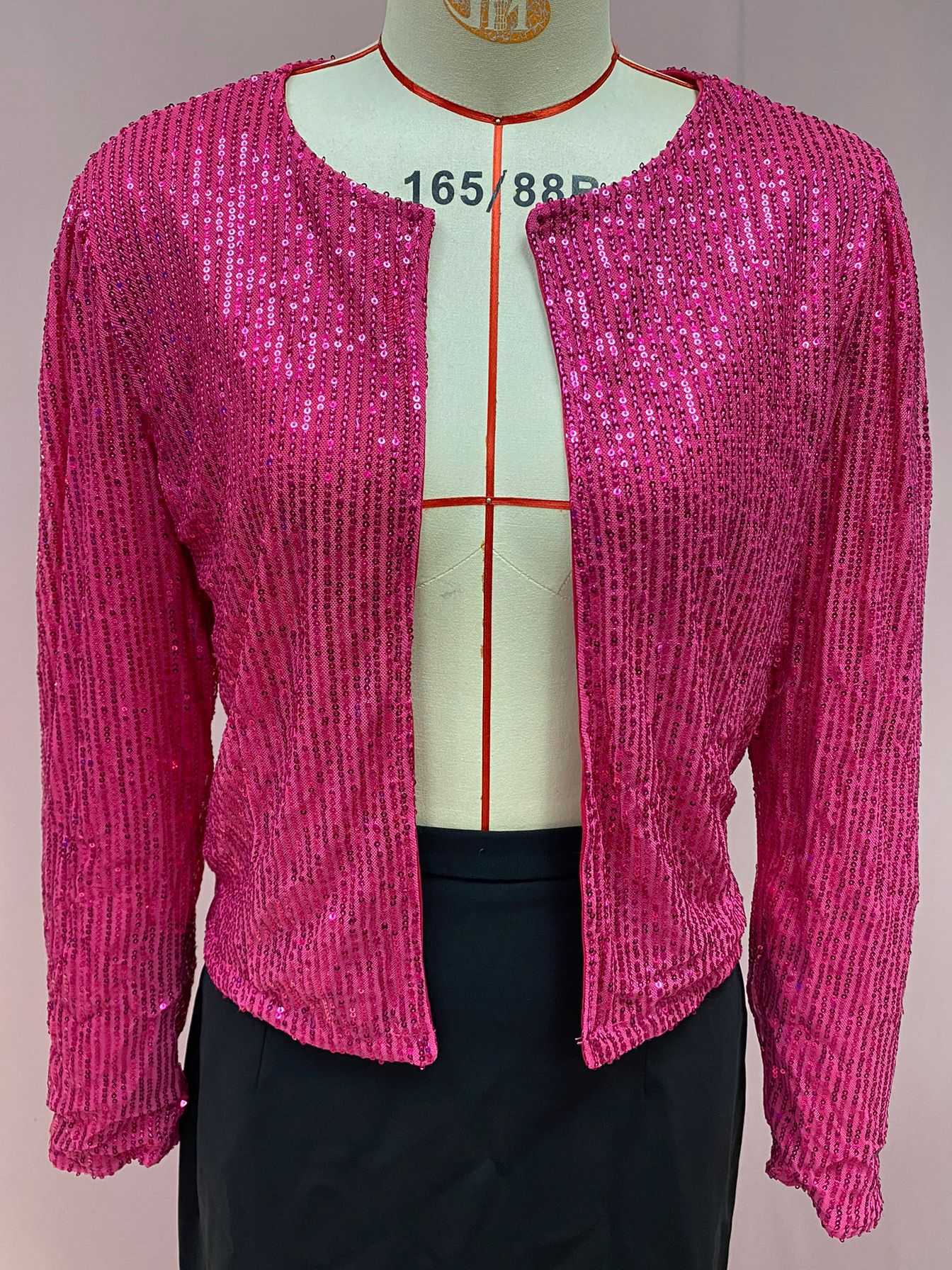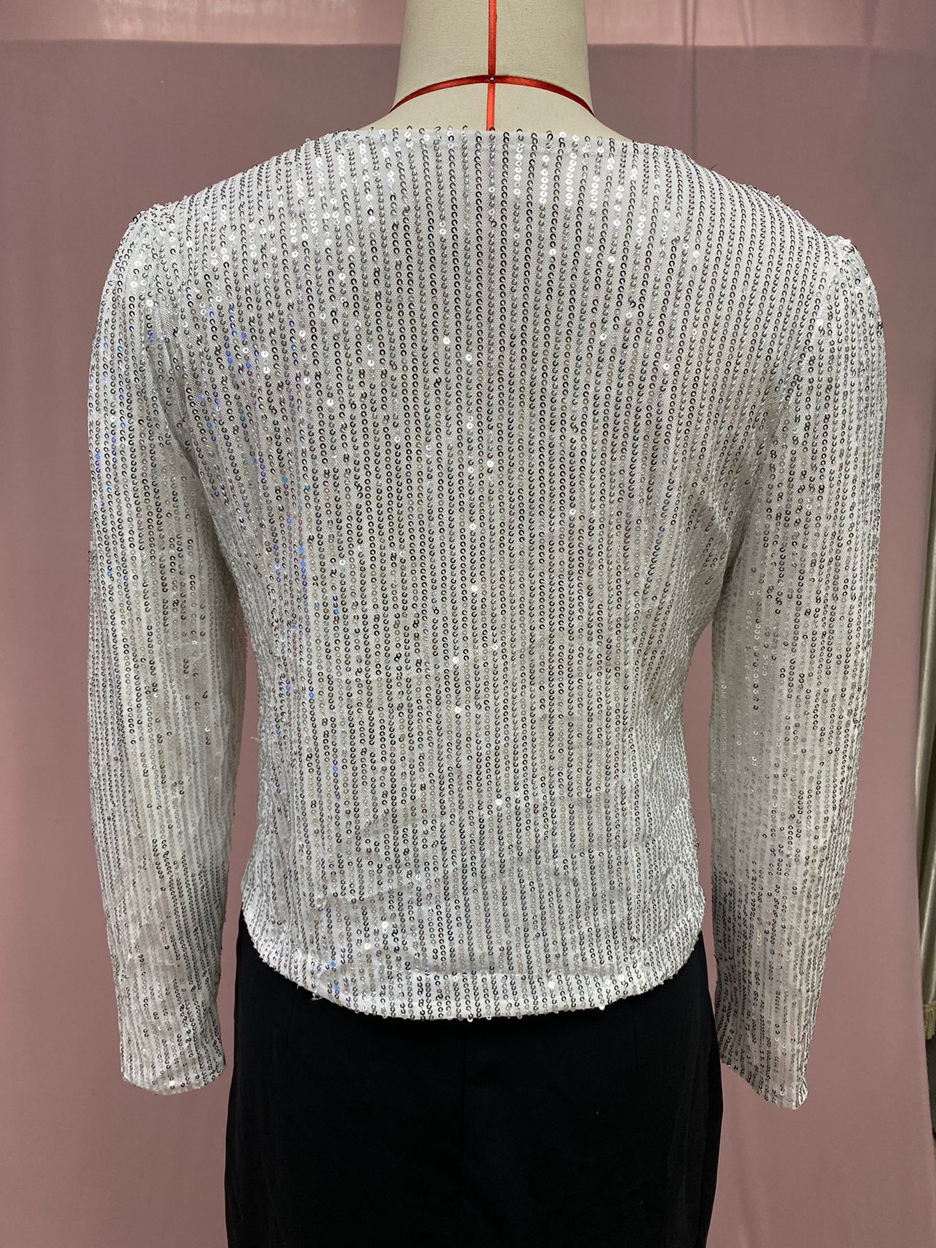 2025년 봄 신상 유럽 및 미국 여성 패션 스탠드 칼라 배색 스팽글 재킷 짧은 캐주얼 다용도 소형 재킷