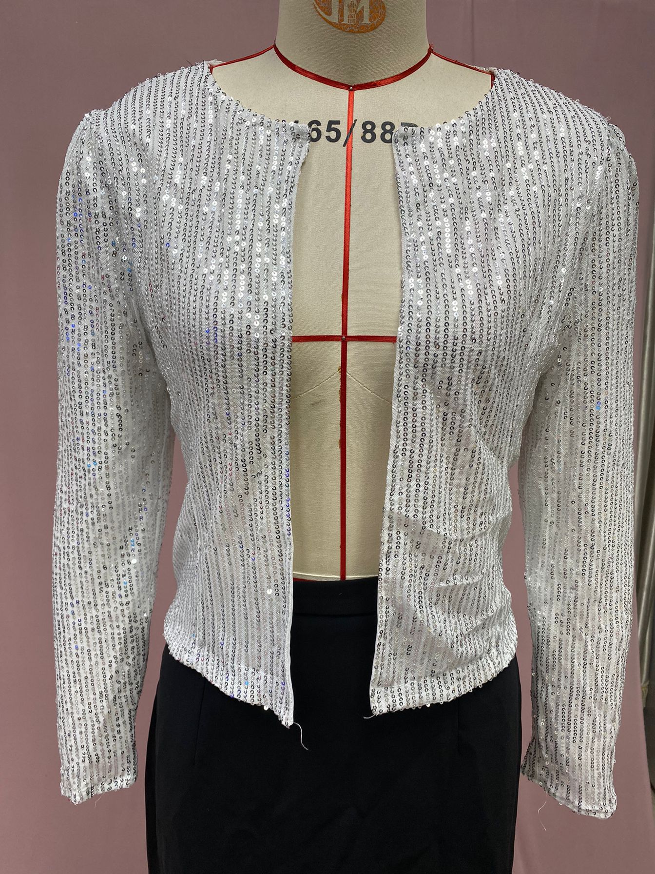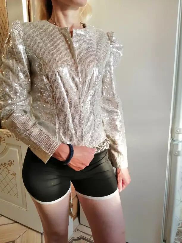 2025년 봄 신상 유럽 및 미국 여성 패션 스탠드 칼라 배색 스팽글 재킷 짧은 캐주얼 다용도 소형 재킷스토어 가기