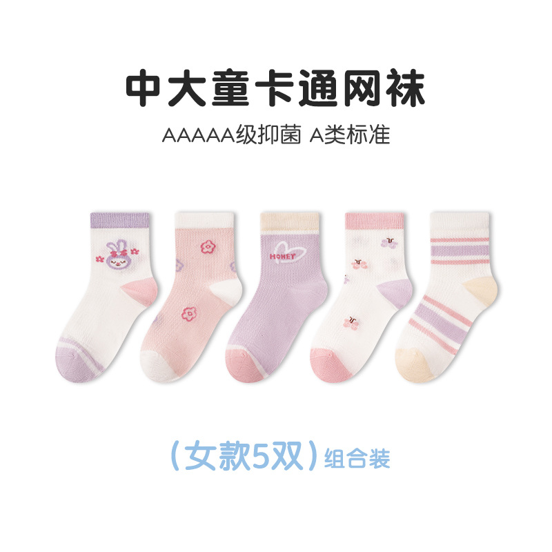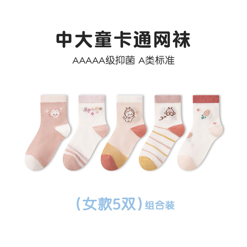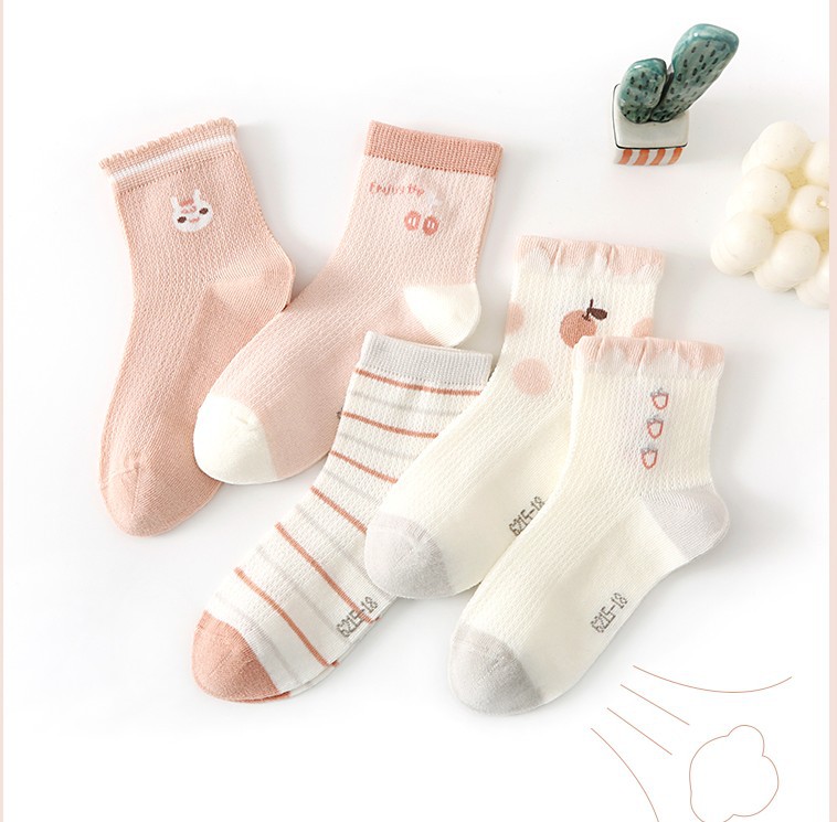 Tangram 귀여운 만화 어린이 양말 봄과 여름 메쉬 얇은 과일 튜브 양말 소녀 통기성 뼈없는 도매