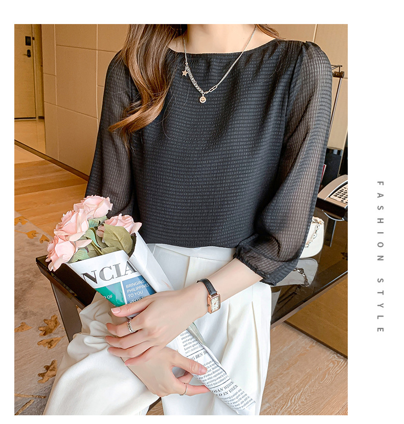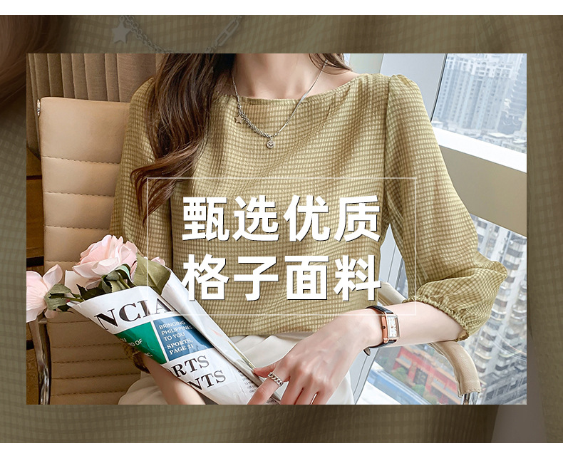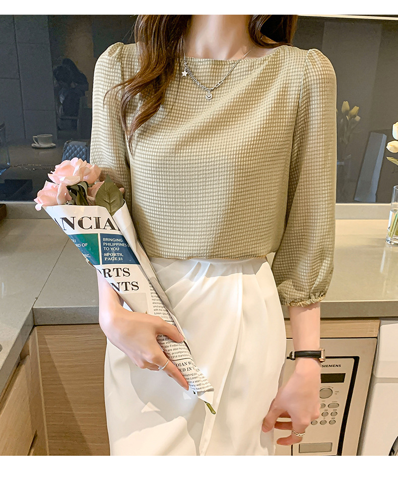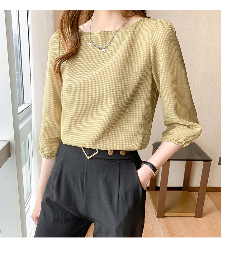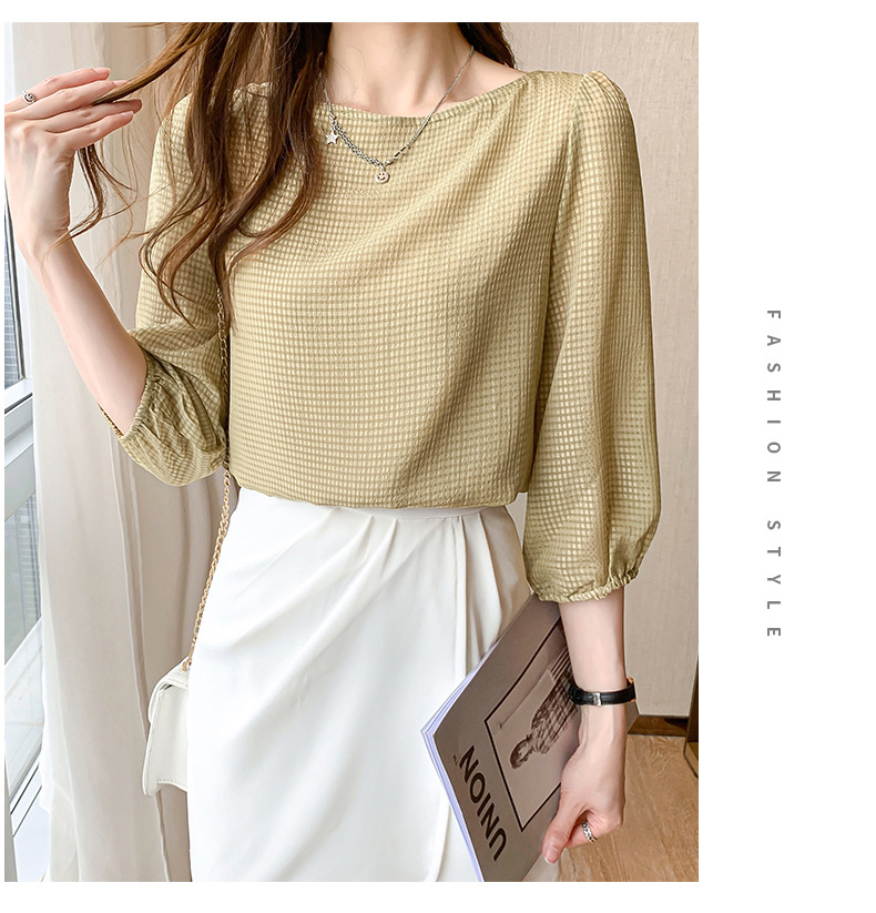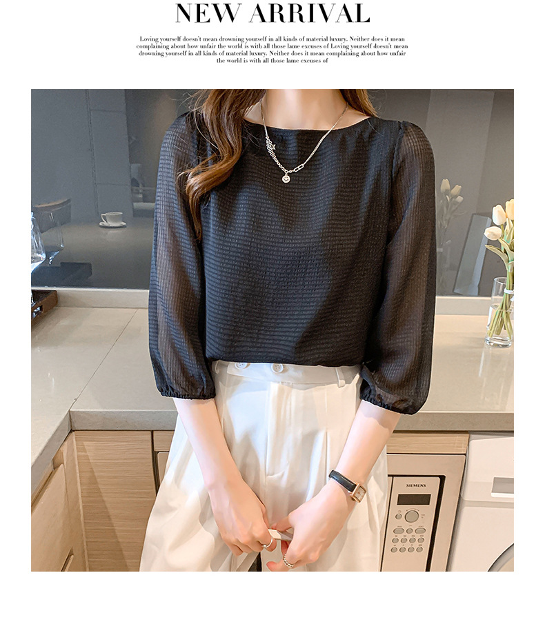 2026년 신상 여성 여름 셔츠, 여성스럽고 세련된 7부 소매 상의, 원라인 네크라인, 루즈핏 랜턴 소매 쉬폰 셔츠스토어 가기