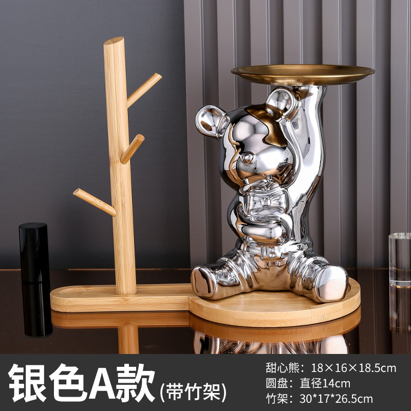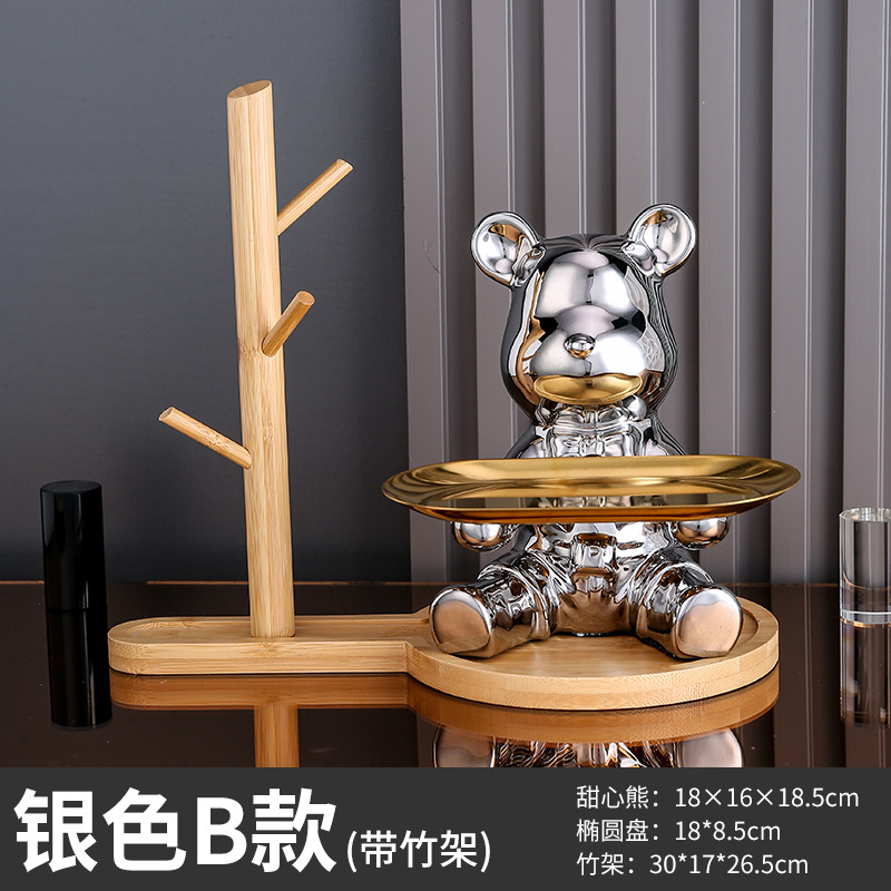 • 사각 플레이트 세라믹 도금 곰 B 이중 지원 실버 + 나무 프레임