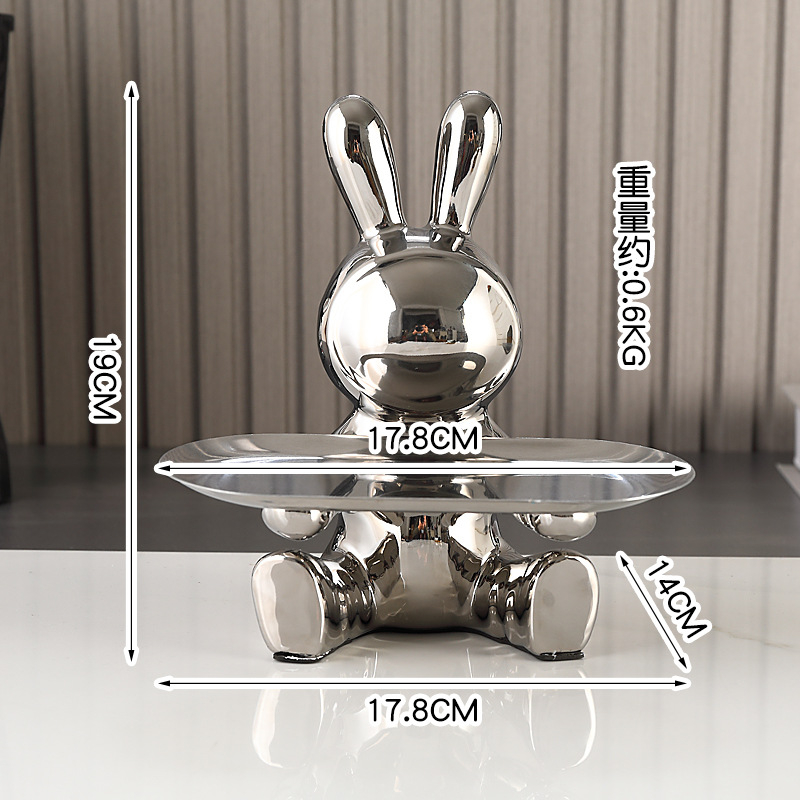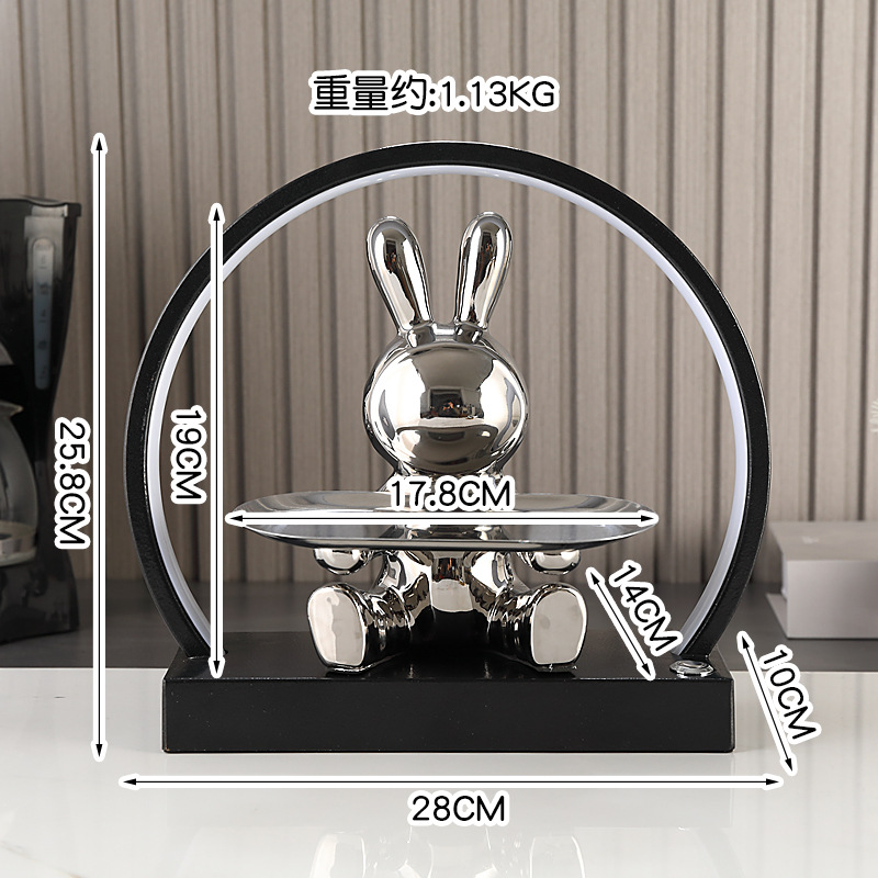• 세라믹 토끼 보관 실버 + 플러그 인 램프 링