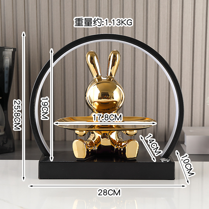 • 세라믹 토끼 보관 골드 + 플러그인 램프 링