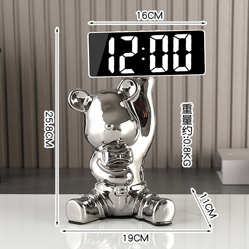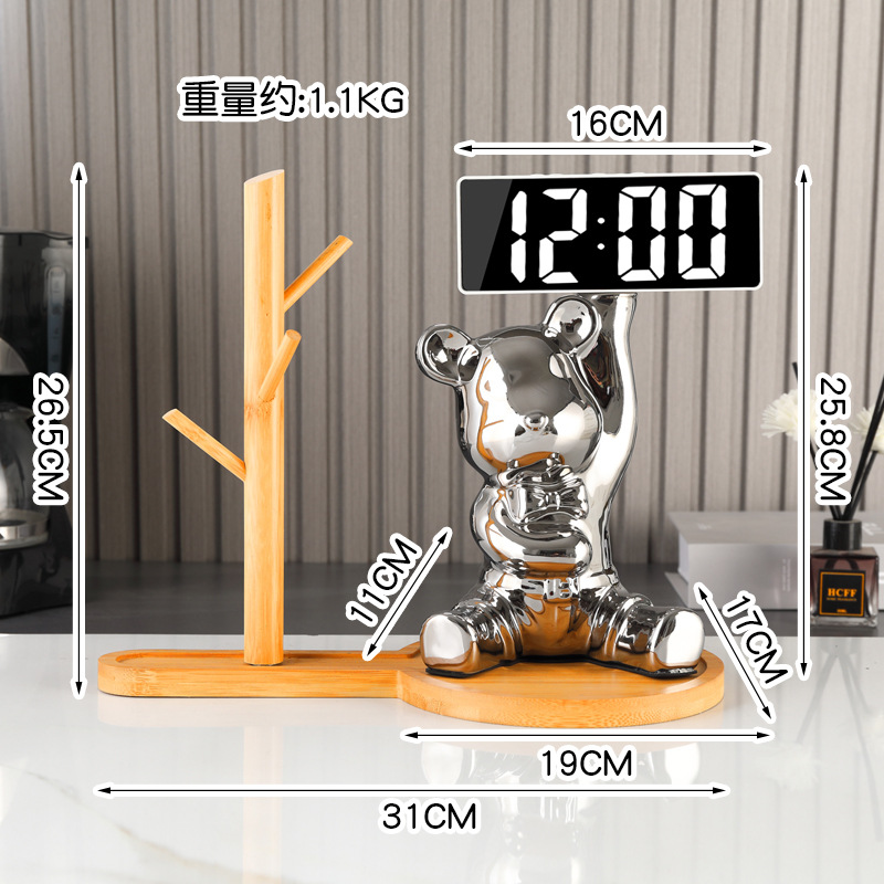 • 디스크 세라믹 곰 실버 플러그인 시계 (음성 제어) 나무 프레임