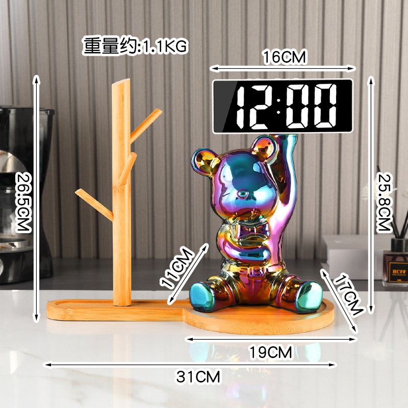 • 디스크 세라믹 곰 다채로운 플러그인 시계 (음성 제어) 나무 프레임