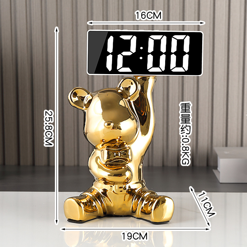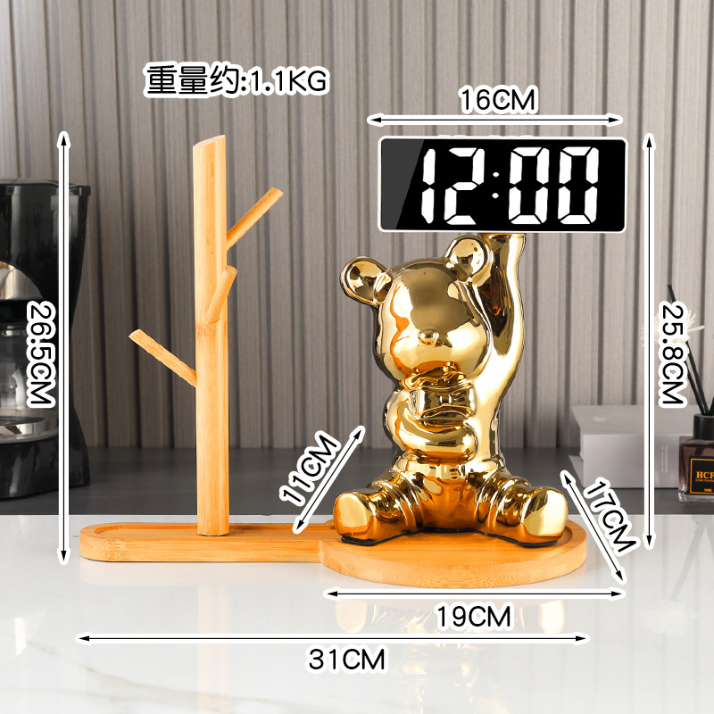 • 디스크 세라믹 곰 골드 플러그인 시계 (음성 제어) 나무 프레임