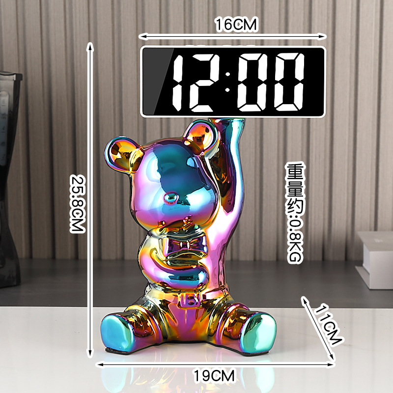 • 디스크 세라믹 곰 다채로운 플러그인 시계 (음성 제어)
