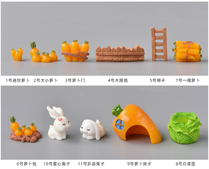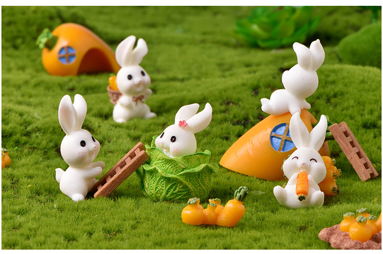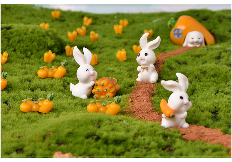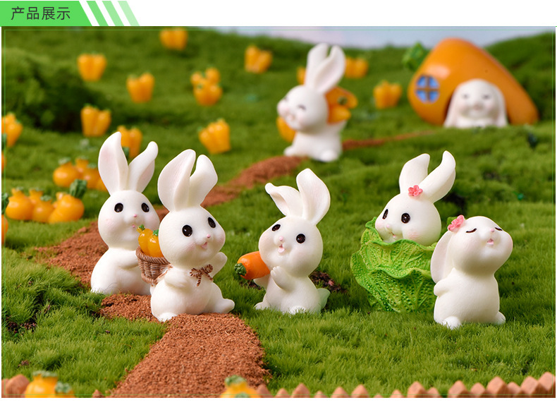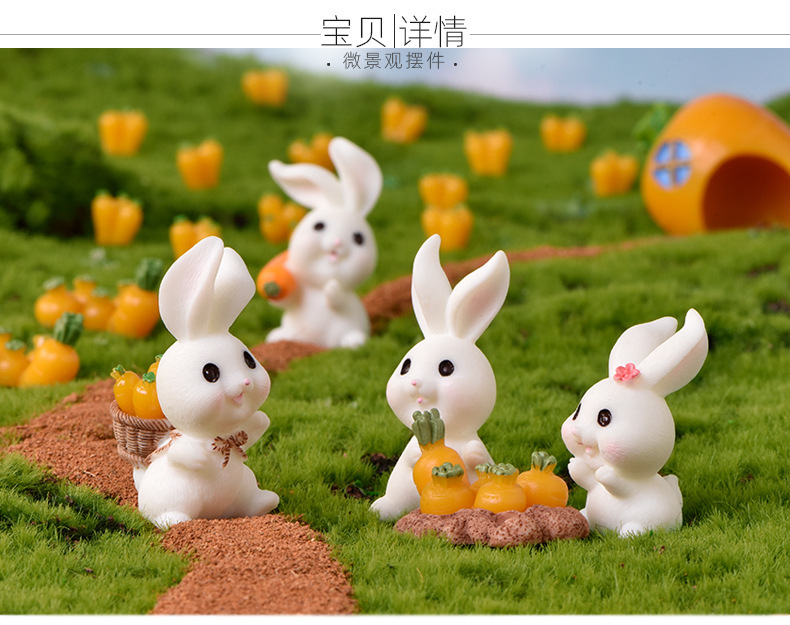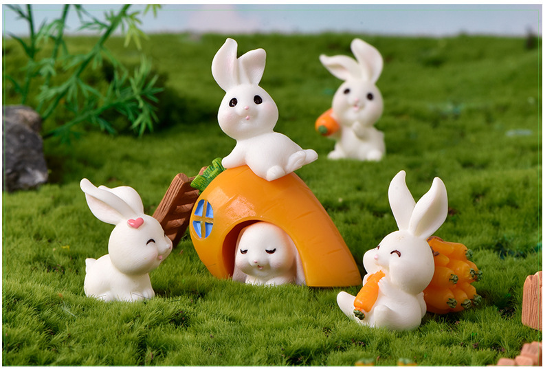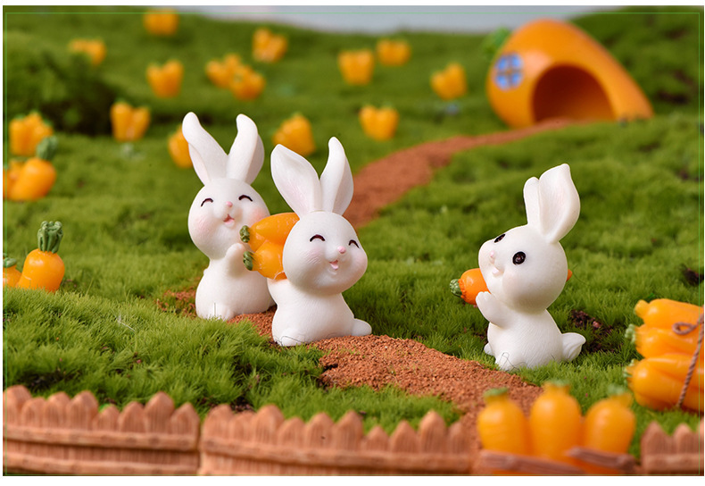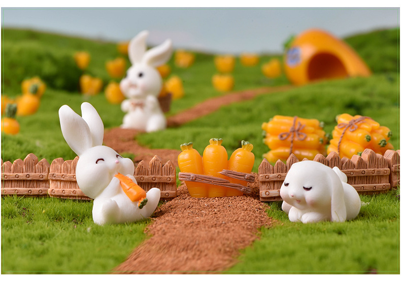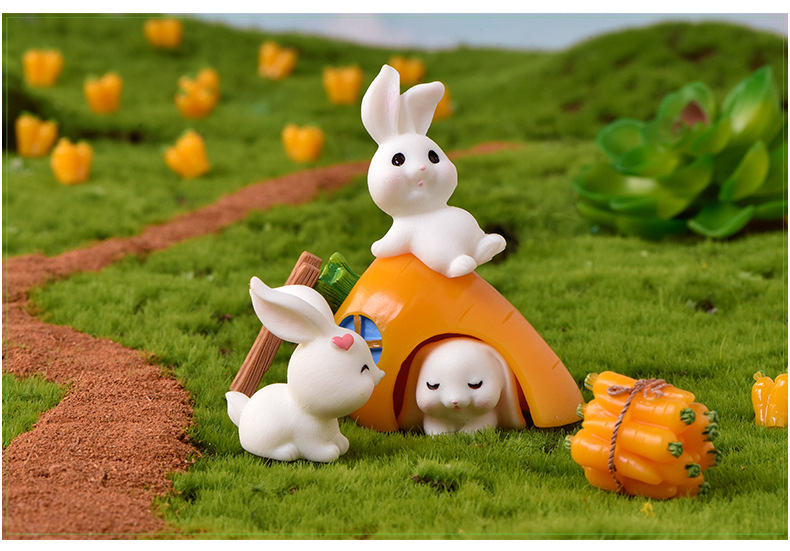 토끼 낙원 마이크로 풍경 장식품 귀여운 만화 동물 당근 토끼 집 사랑스러운 토끼 정원 수지 액세서리스토어 가기