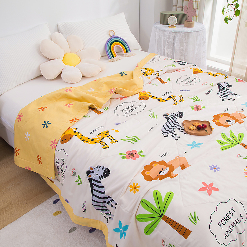 어린이 여름 시원한 이불 면 낮잠 유치원 만화 에어컨 이불 봄과 가을 순면 아기 여름 얇은 아기