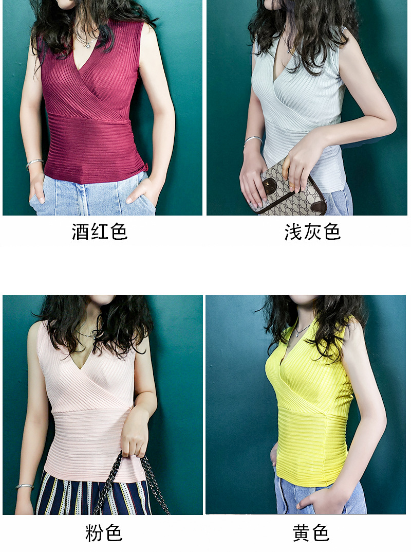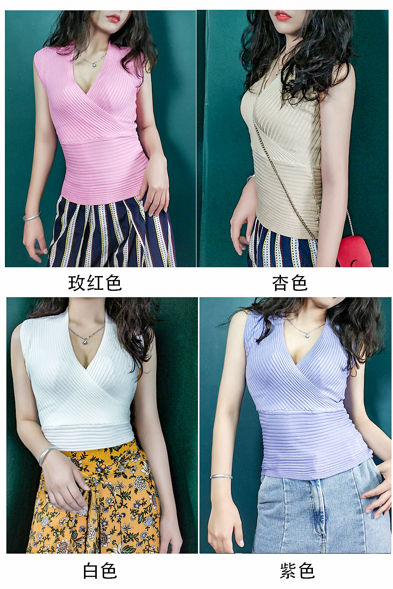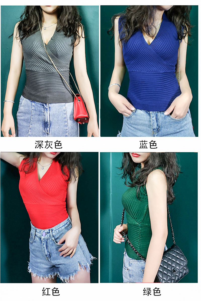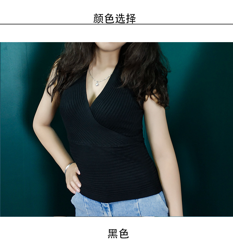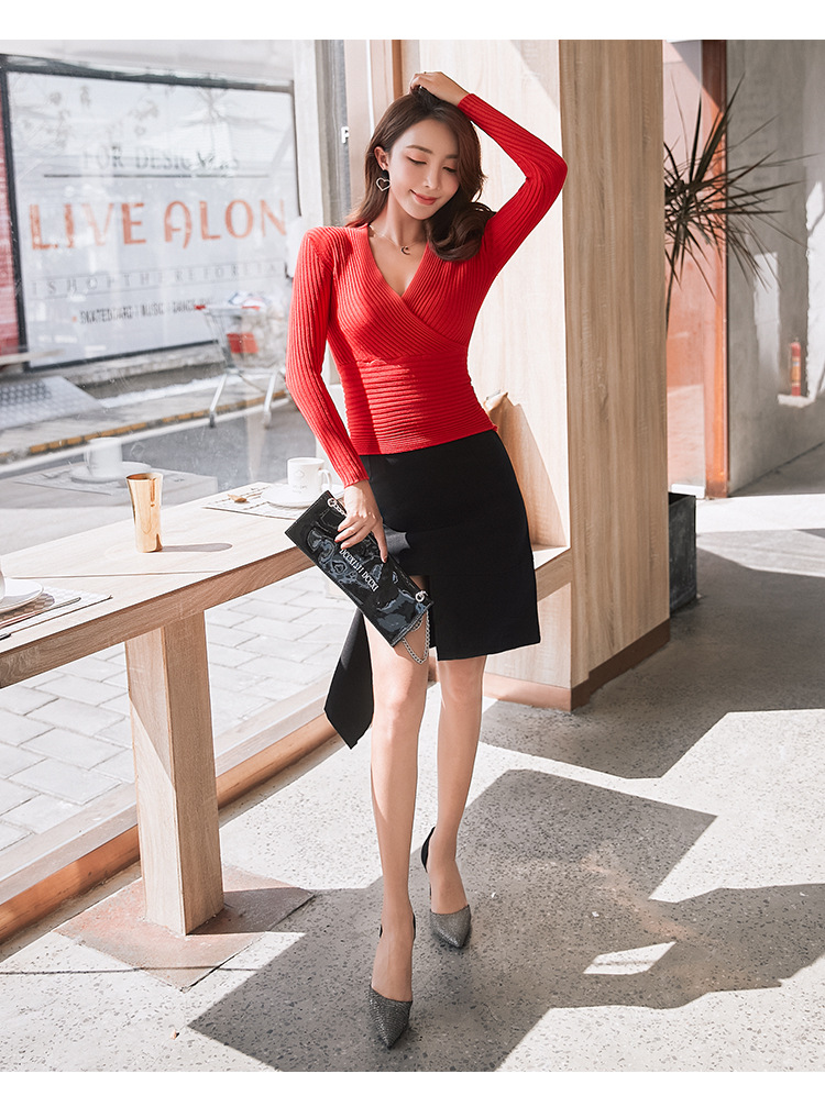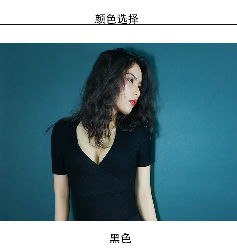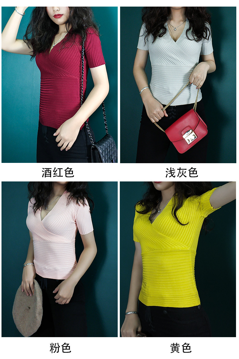 봄과 가을 새로운 로우 컷 타이트 섹시 스웨터 여성용 스레드 긴팔 크로스 딥 브이넥 니트 베이스 셔츠 탑스토어 가기