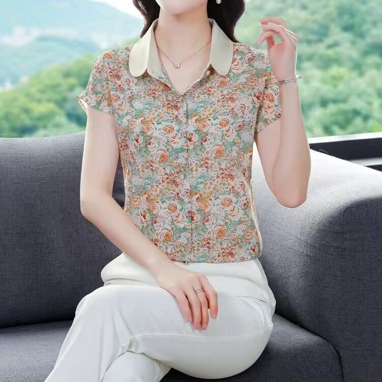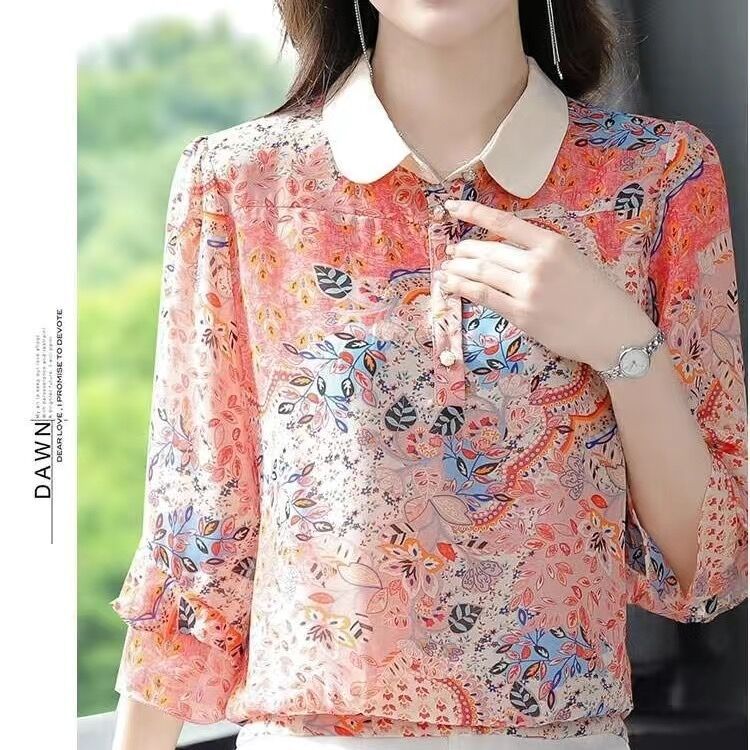 유럽제 플로럴 쉬폰 셔츠 여성용 2022 봄과 여름 외국 스타일 특별 가격 폴로 셔츠 올 매치 7 소매 아름다운 탑