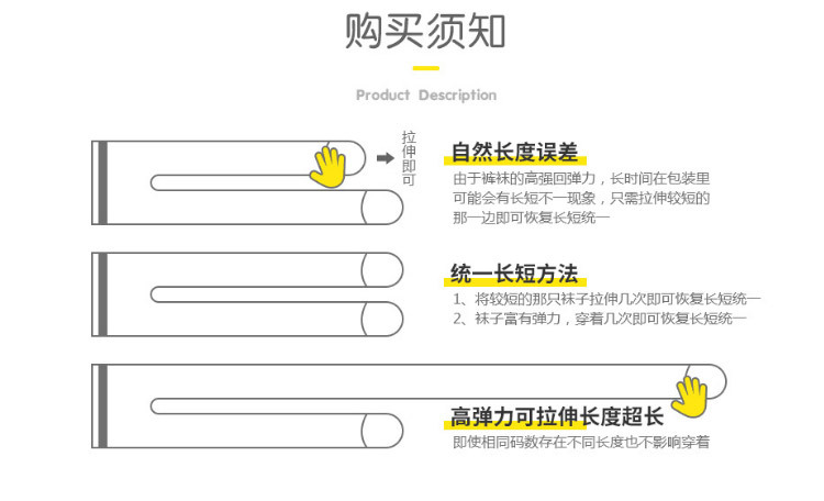 以上是手工测量,不排除5cm左右误差,平铺尺码,袜子看起来比较短,但是弹性非常好,实际可以拉伸10cm以上。