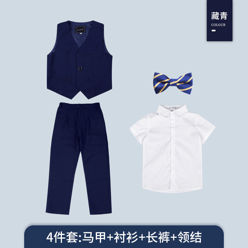• 네이비 조끼 + 바지 + 반팔 단색 셔츠 (나비 넥타이)