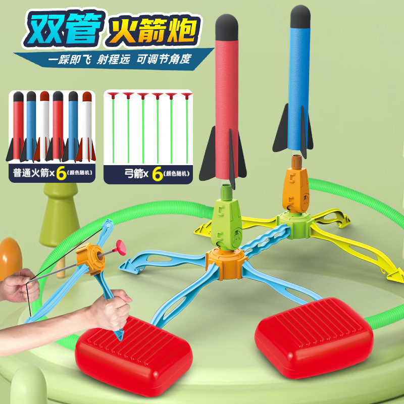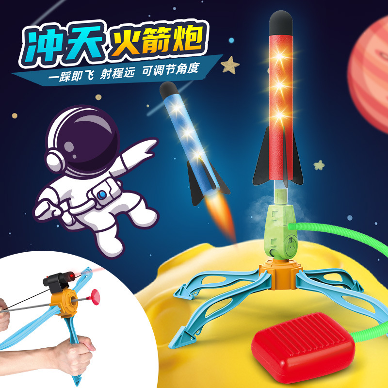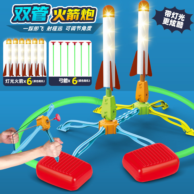 어린이 스카이 로켓 발사 활과 화살 2 대 1 발광 발 발사 로켓 총 야외 스포츠 남녀 장난감스토어 가기