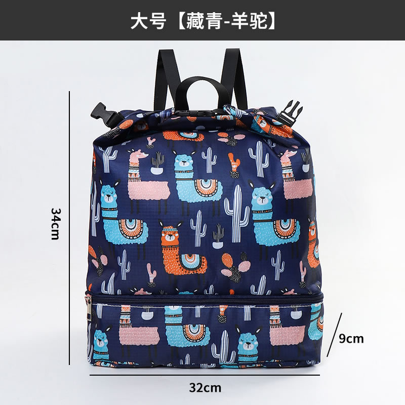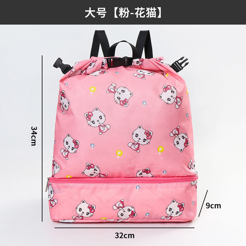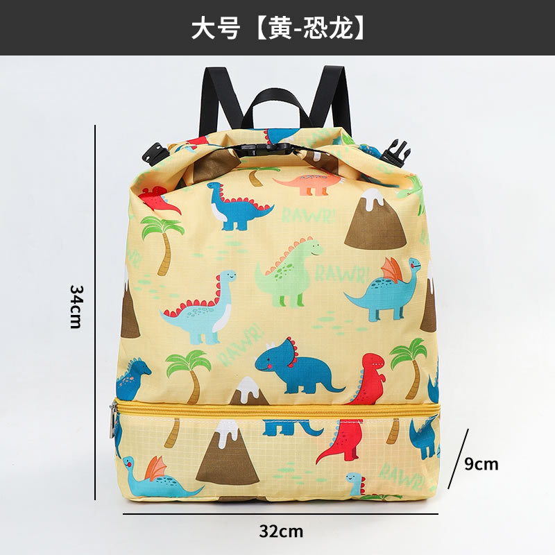 어린이 수영 가방 학생 귀여운 만화 배낭 남성과 여성의 휴대용 더블 레이어 건식 및 습식 분리 방수 보관 가방