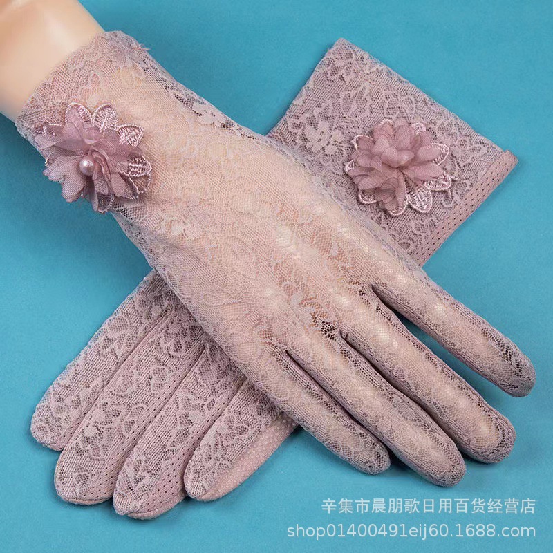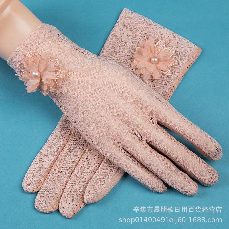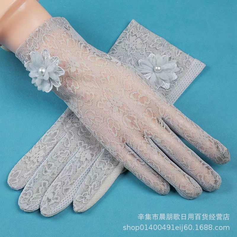자외선 차단제 장갑 여성용 여름 자외선 방지 레이스 얇은 터치 스크린 라이딩 운전 미끄럼 방지 짧은 장갑