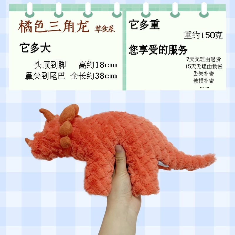 공장 직접 판매 공룡 인형 유럽과 미국의 가정 스타일 백악기 초식 트리케라톱스 플러시 장난감 도매스토어 가기