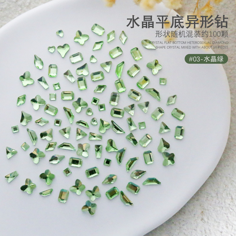 100 PC 네일 드릴 라이트 그린 핑크 평면 특수 모양의 다이아몬드 그린 라이트 블루 유리 크리스탈 네일 장식 다이아몬드