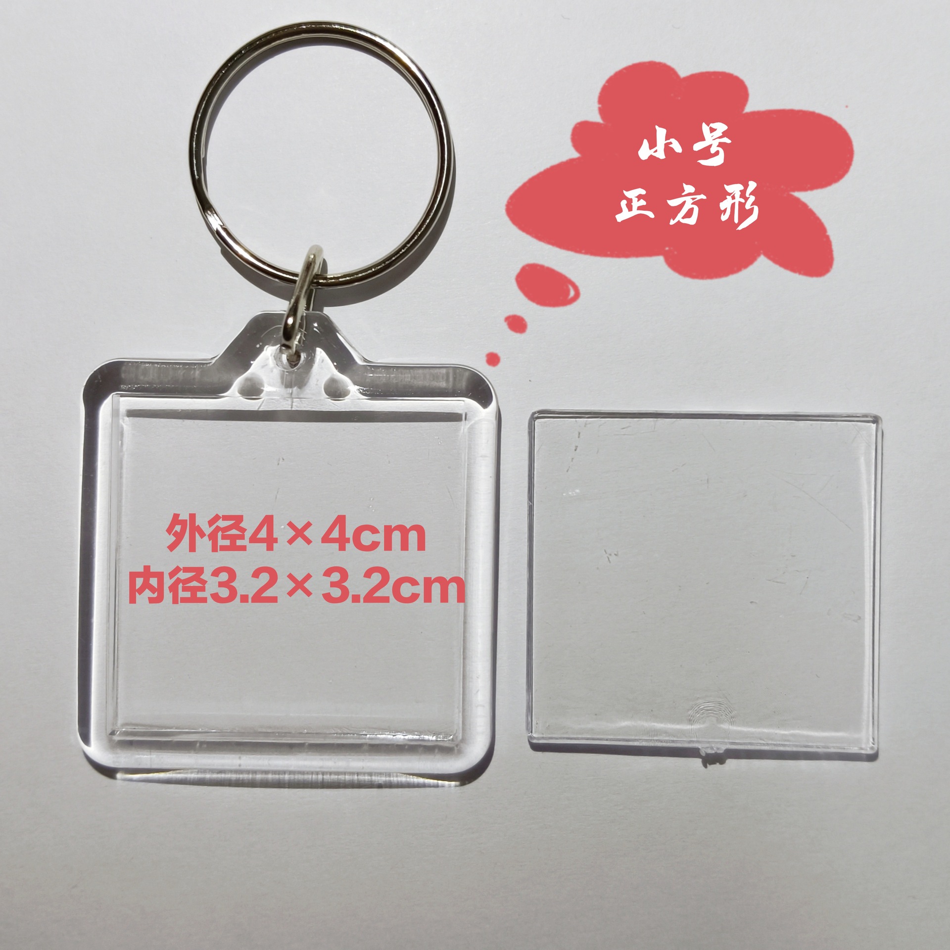 스퀘어 라운드 아크릴 키 체인 투명 쉘 플라스틱 시스 키 체인 펜던트 사진 서예 사진 프레임스토어 가기