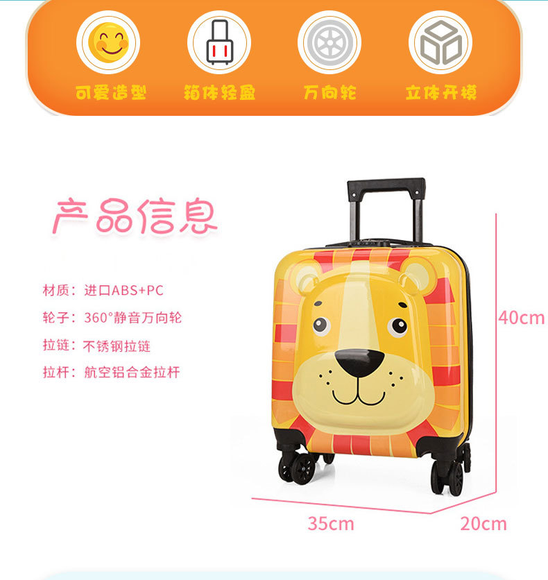 제조업체 도매 18inch 로고 인쇄 가능 어린이용 여행 가방, 작은 동물 모양 트롤리 가방, 학생용 여행 가방, 방수 및 도난 방지 기능스토어 가기