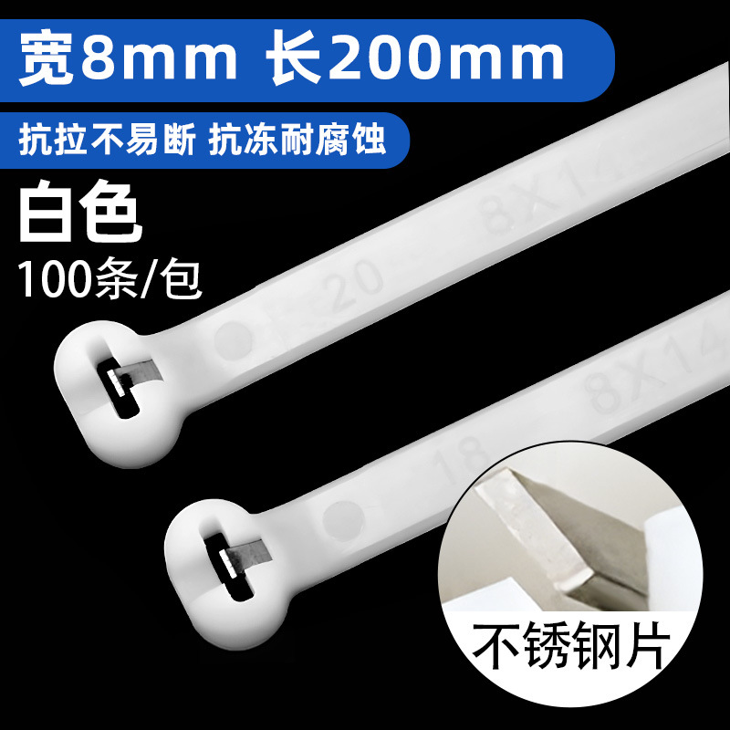 • 인레이형 케이블 타이, 8*200(너비 7.6mm) 100개 흰색