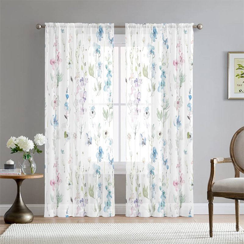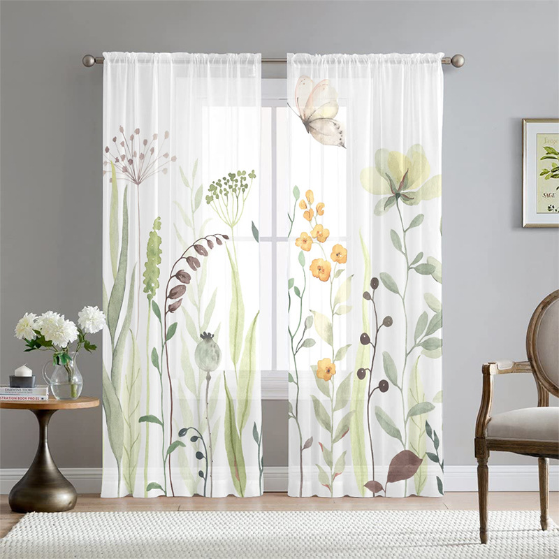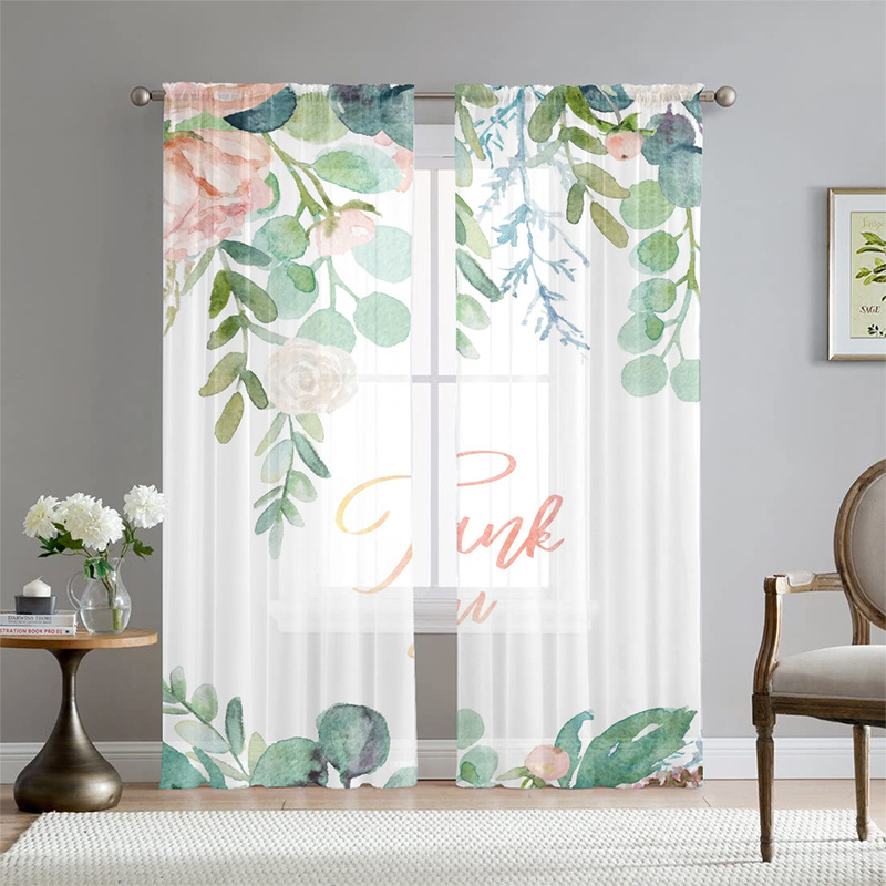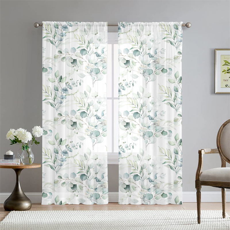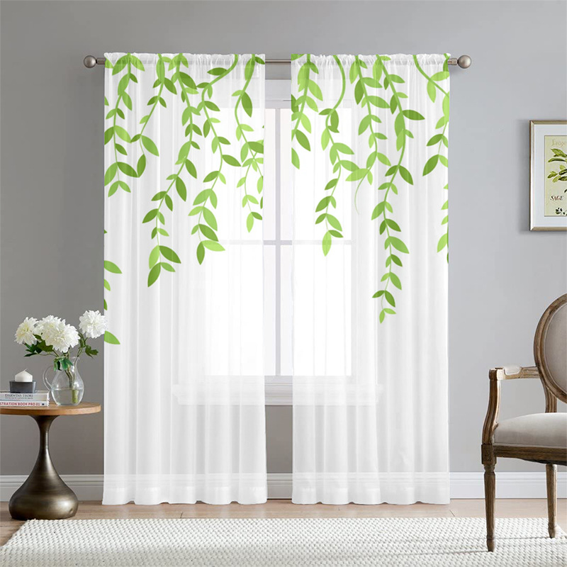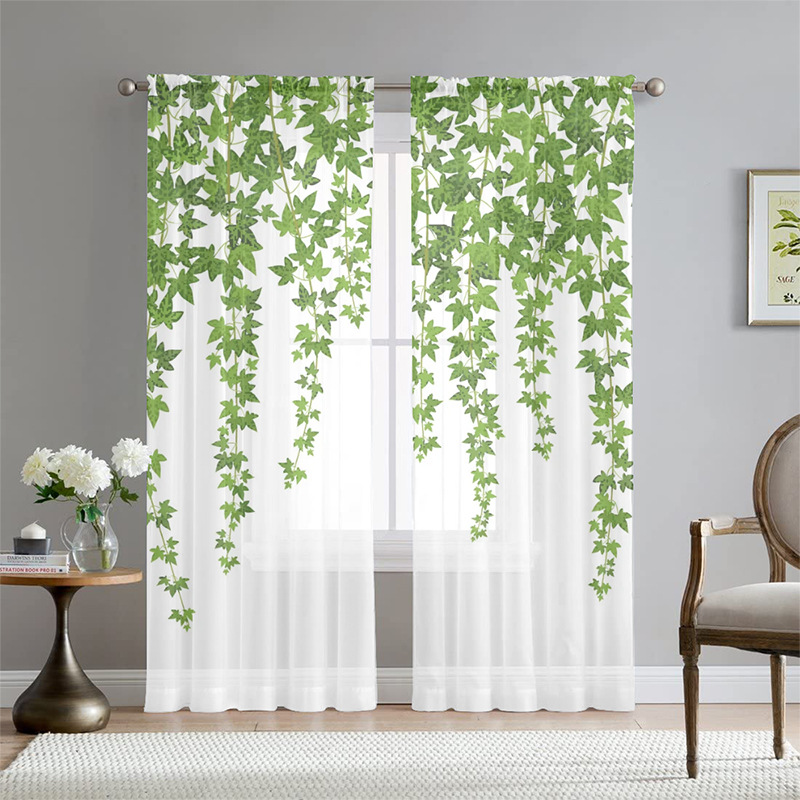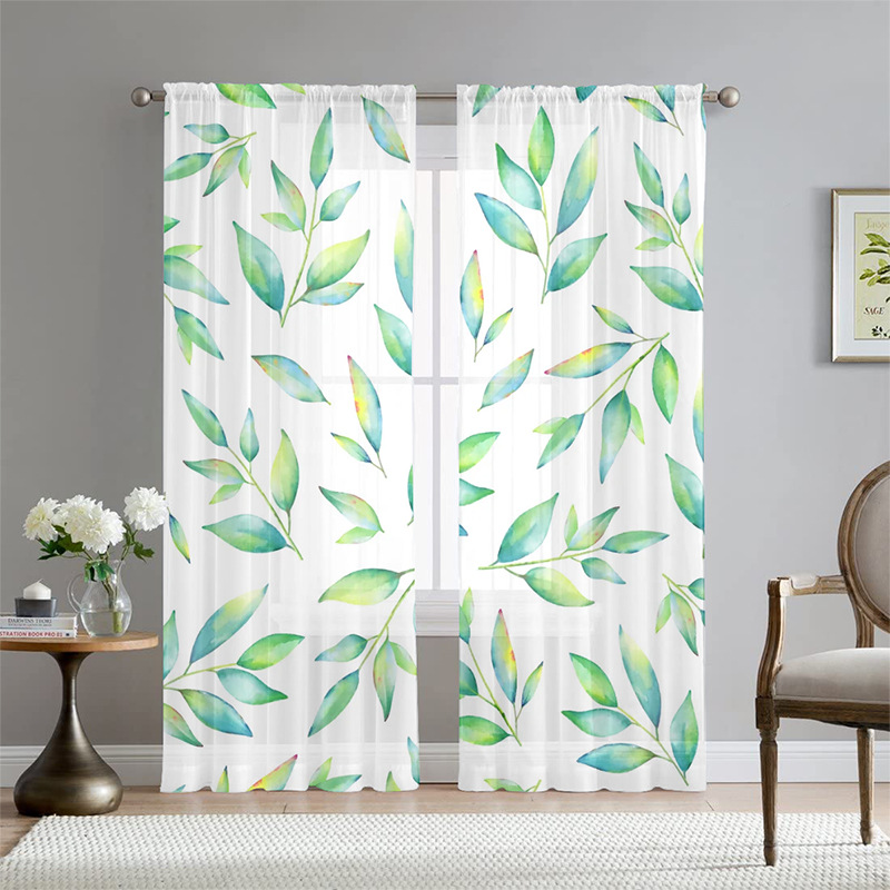 북유럽 녹색 식물 창 스크린 커튼 아마존 호텔 완성 커튼 도매 거실 베이 창 스크린 커튼 펀치 프리스토어 가기
