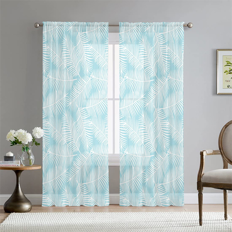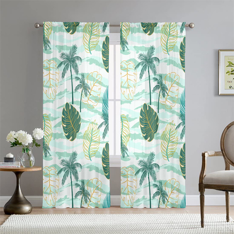북유럽 녹색 식물 창 스크린 커튼 아마존 호텔 완성 커튼 도매 거실 베이 창 스크린 커튼 펀치 프리