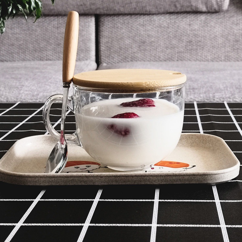 오트밀 그릇 대용량 일본 머그 뚜껑이있는 아침 식사 컵 숟가락 주스 컵 유리 오트밀 컵 홈 컵