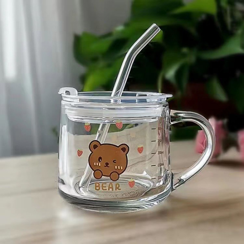 • 귀여운 곰 싱글 컵 + 뚜껑 + 빨대