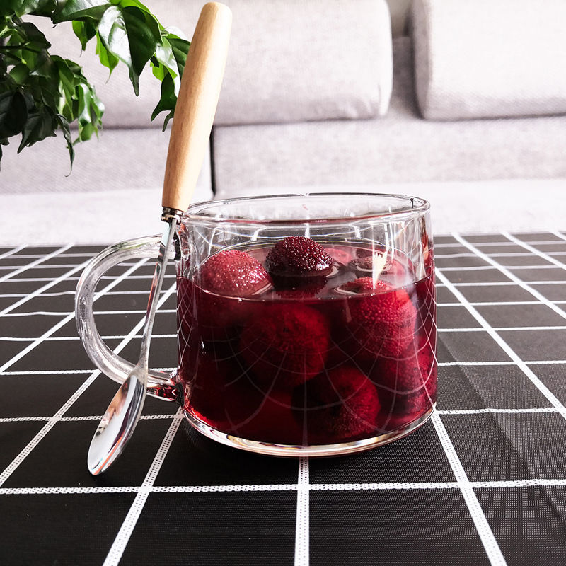 • 딸기 여자 컵 + 대나무 뚜껑 + 나무 손잡이 스푼