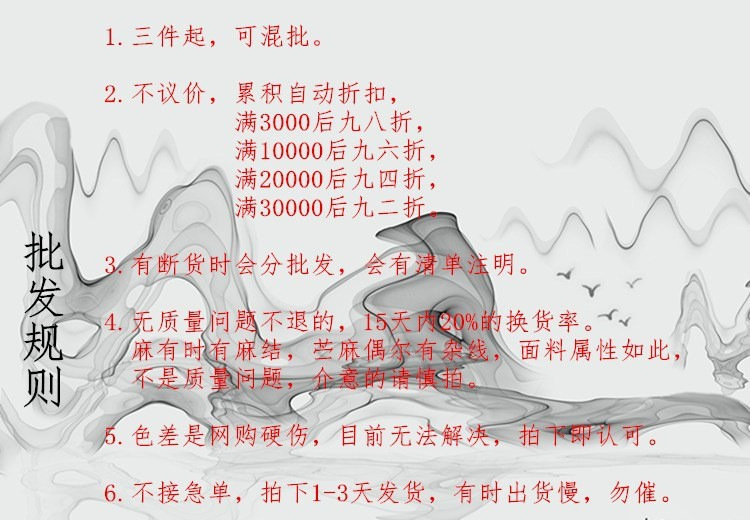 如使用工厂现有样板 起订量30件 出货期15-30天