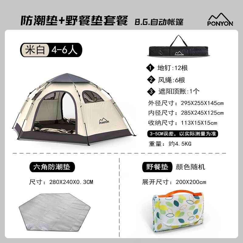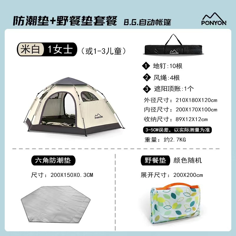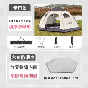 • 대형 사이즈 - 황백색 육각형 텐트 + 방습 매트 + 피크닉 매트 [4~6인]