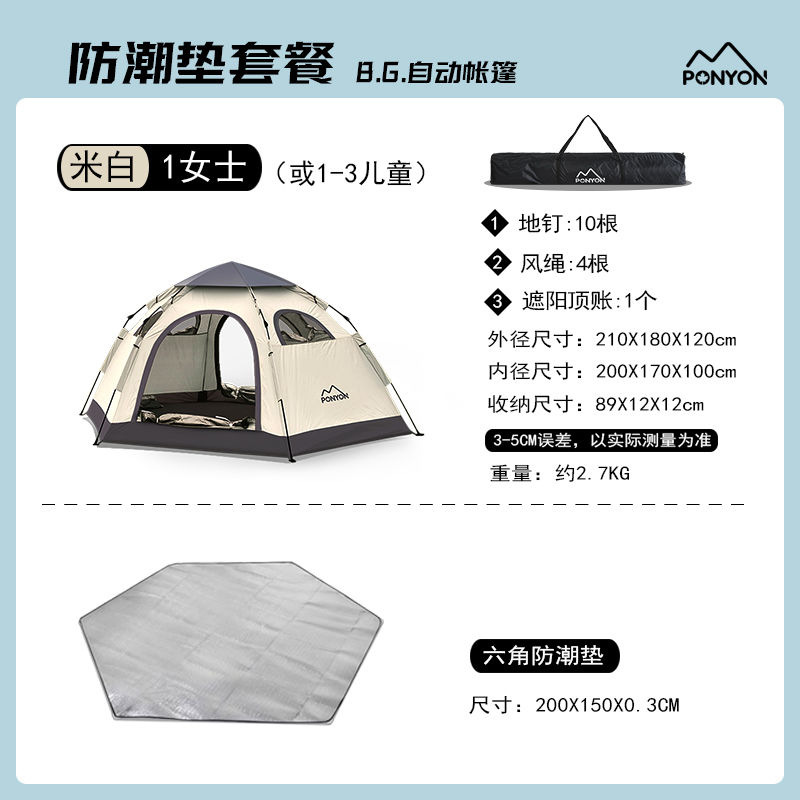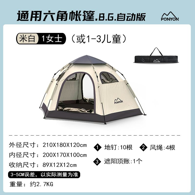 야외 캠핑 텐트 육각 다인용 비치 파크 차양 자동 접이식 퀵 오픈 캠핑 휴대용 텐트스토어 가기