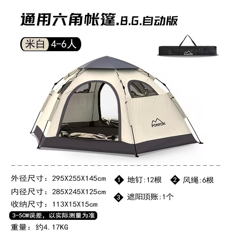 야외 캠핑 텐트 육각 다인용 비치 파크 차양 자동 접이식 퀵 오픈 캠핑 휴대용 텐트