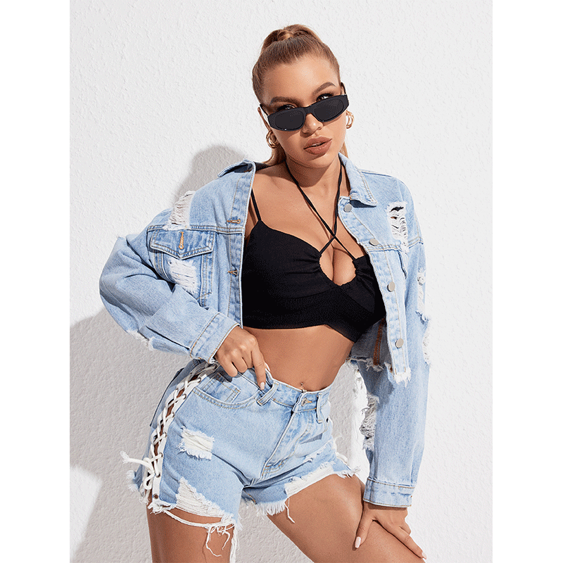 2025 대외 무역 국경 간 새로운 밝은 색상 다목적 루즈 워시 자켓 긴팔 데님 짧은 코트 여성상의스토어 가기