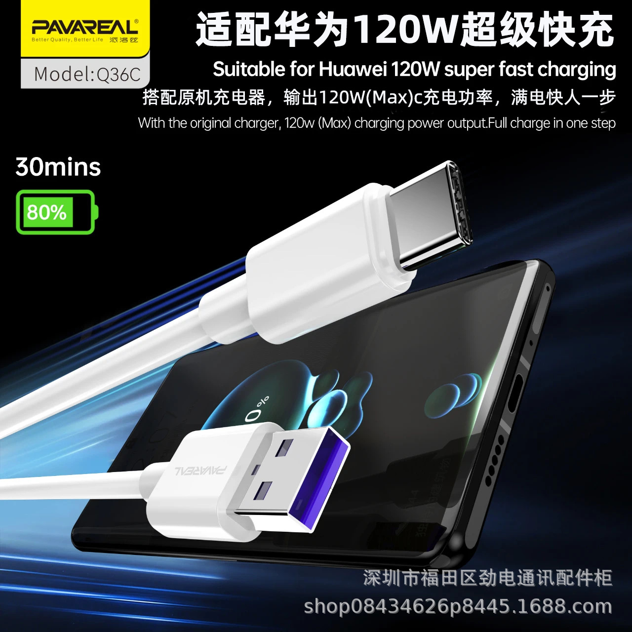 Q36M/I/C 고속 충전 데이터 케이블 (TPE 소프트 케이블) 5A 화웨이용