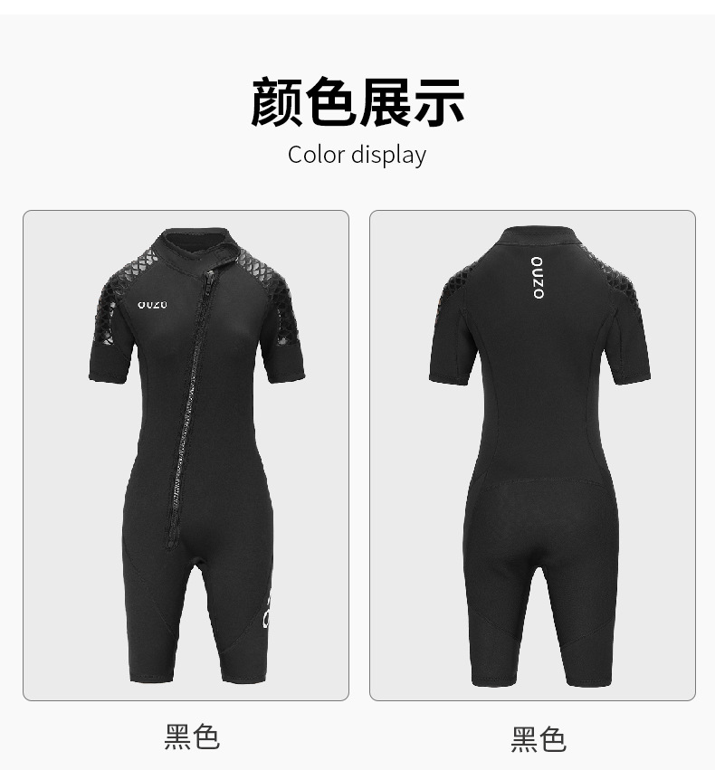 OUZO潜水服3mm男女款短袖短裤连体潜水衣 加厚保暖防寒防晒冲浪服