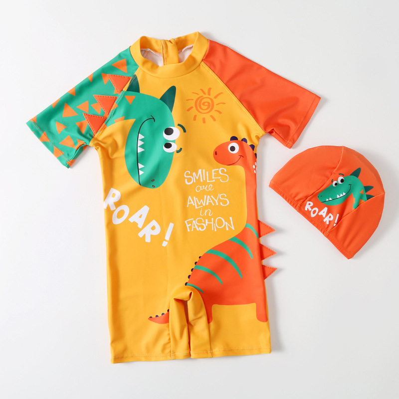 한국 어린이 수영복 소년 선 스크린 반팔 원피스 수영 아기 잘 생긴 공룡 빠른 건조 서핑 옷 도매스토어 가기