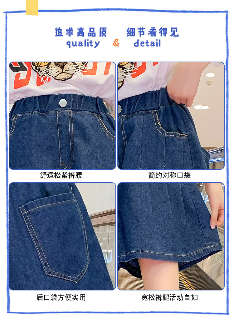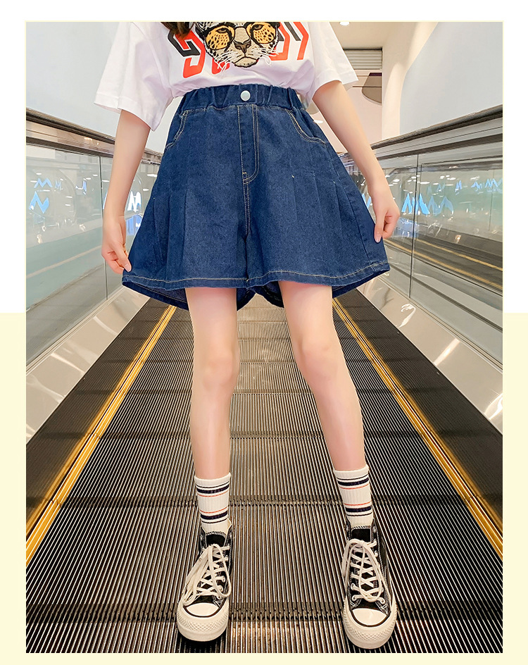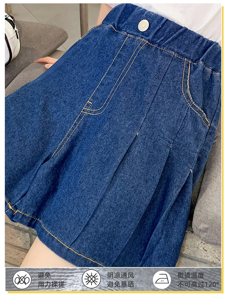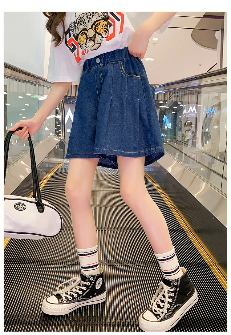여아 의류 여름 와이드 레그 데님 반바지 플리츠 스커트 중형 및 대형 아동용 루즈한 핫팬츠 여아 캐주얼 스커트 바지스토어 가기