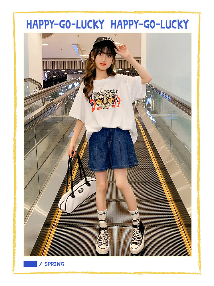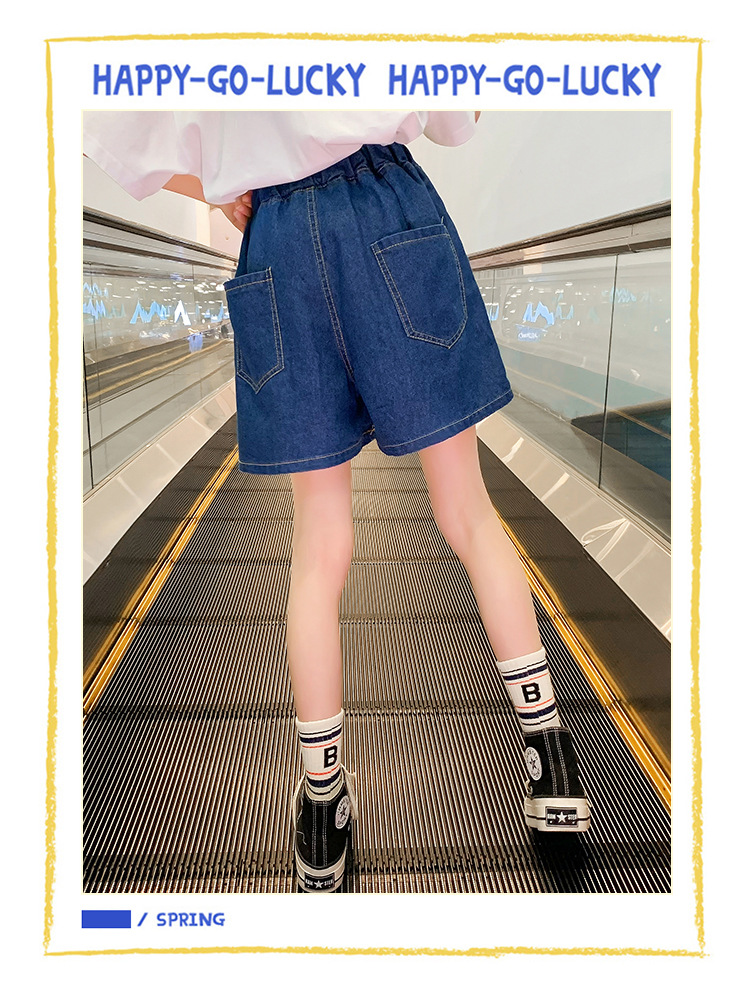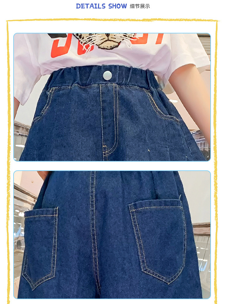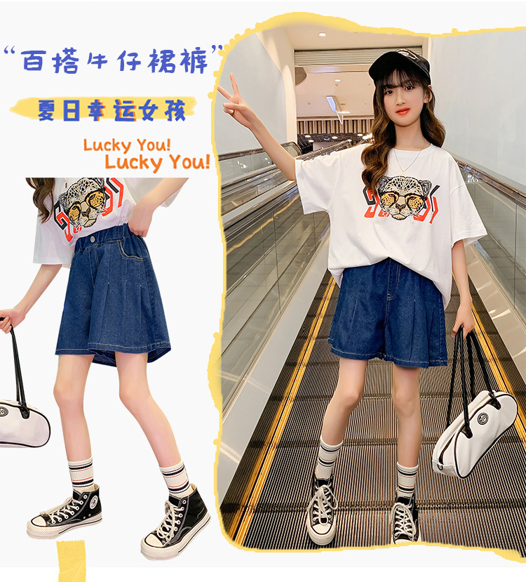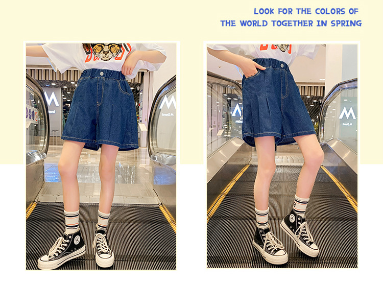 여아 의류 여름 와이드 레그 데님 반바지 플리츠 스커트 중형 및 대형 아동용 루즈한 핫팬츠 여아 캐주얼 스커트 바지스토어 가기